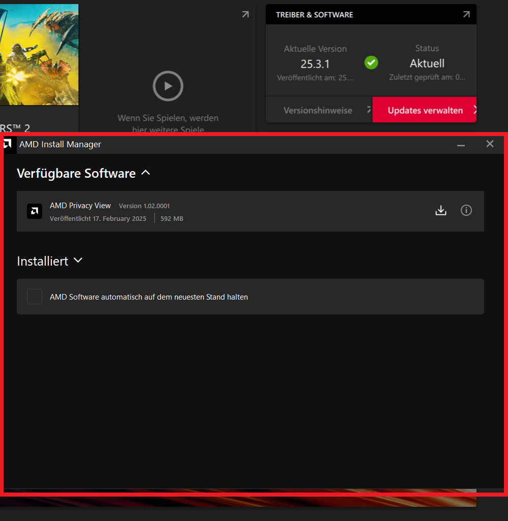 ... Plötzlich ist der Installer anders von AMD da gibt es eine Unterfunktion für Chipset und ein AMD Privacy View was man Installieren kann. Noch nie gesehen oder gehört, jedenfalls will ich das nicht haben. Was Google dazu ausgibt für mich nutzlos und benötigt fast 600MB.