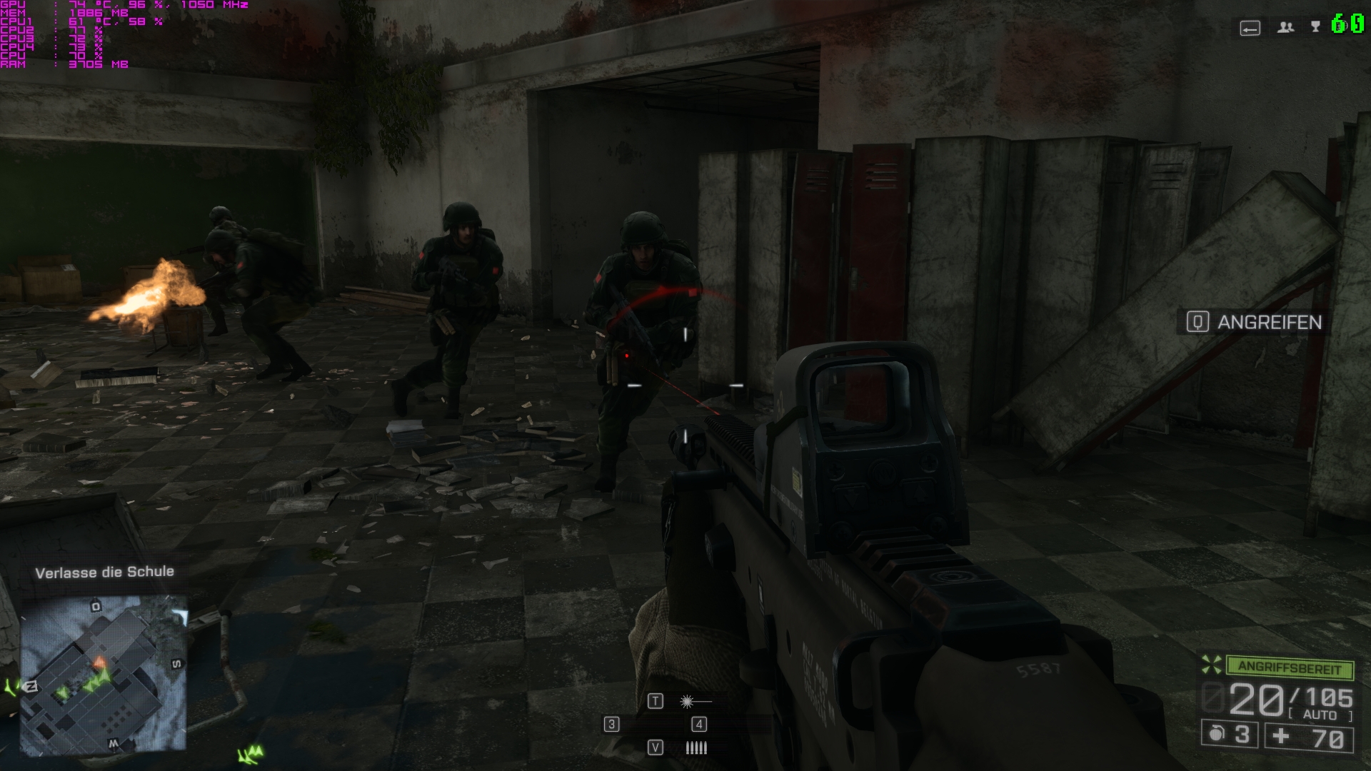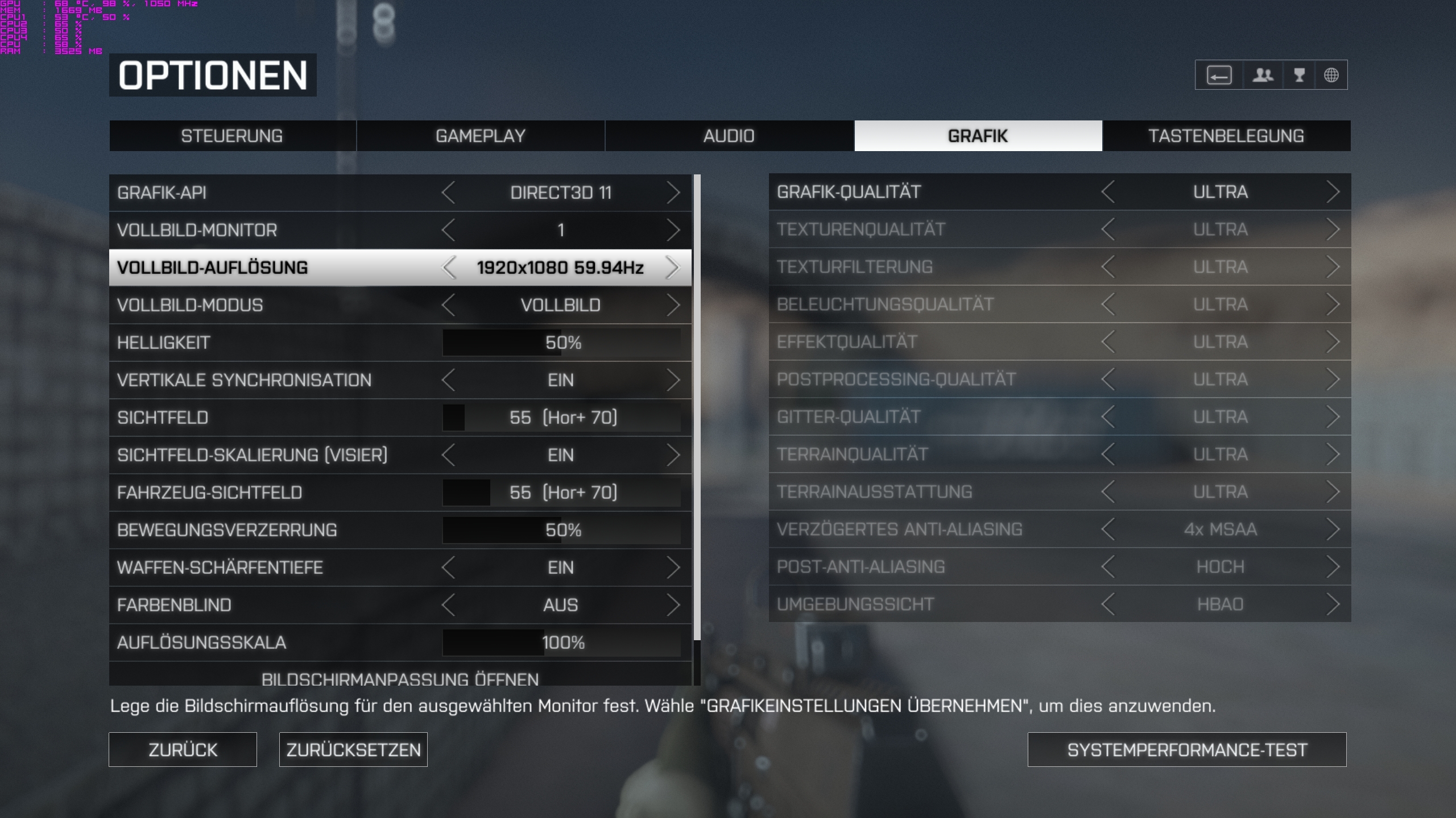 (Und habe eben von vorne angefangen durch zu spielen war da draussen auf dem freien feld wo der hubschrauber usw kommt wenn ich markiert habe das der hubschrauber los legt ging die FPS auf 56 für 3 sek und dann wieder auf 60 FPS)