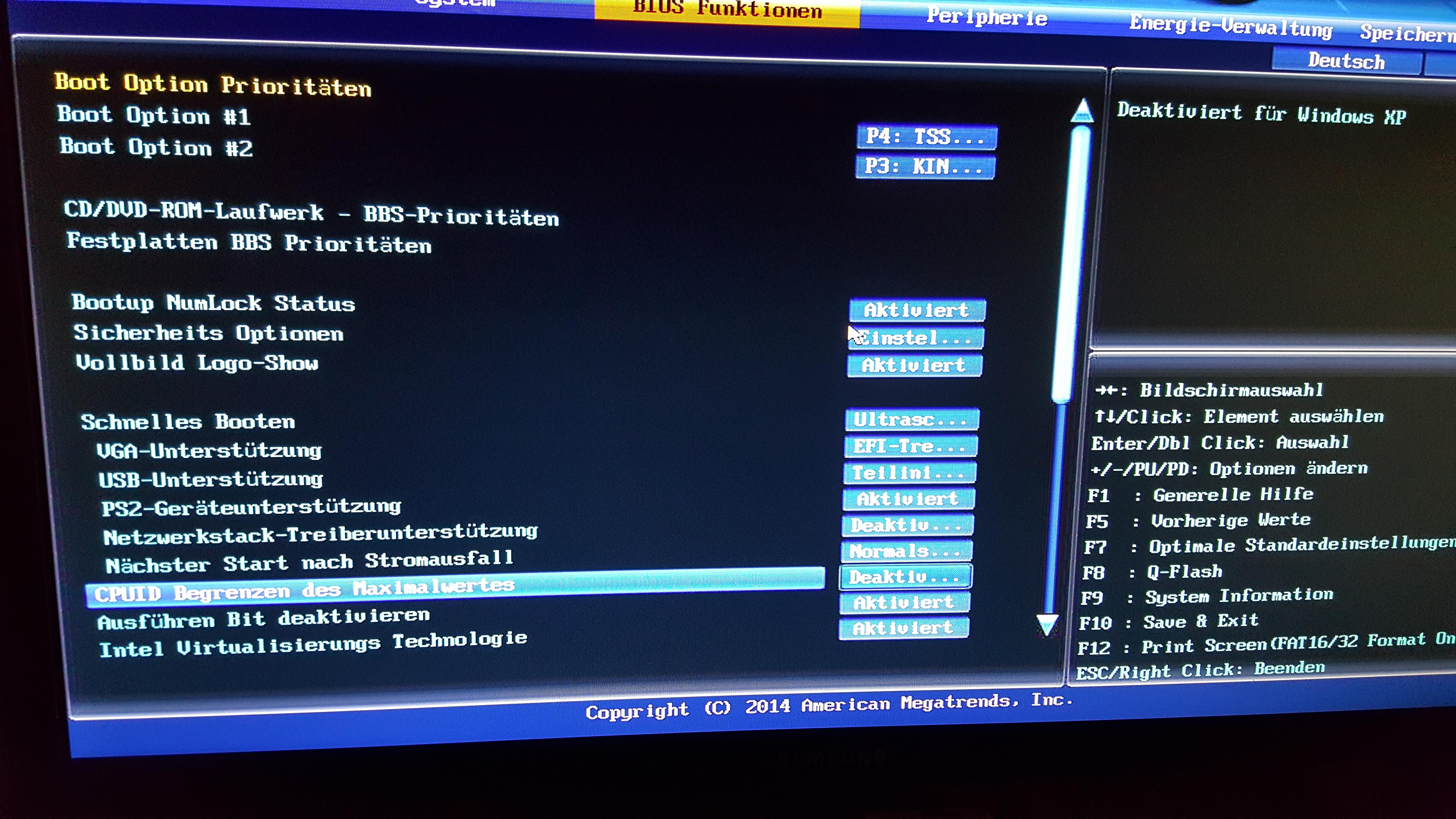 Und auf dem einem Bild das CPUID oder so soll ich das auf deaktiviert lassen oder Aktivieren weil steht nur deaktiviert für Win XP