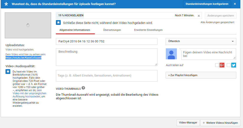 Und eben dann die Grafik Fehler oder woher das auch immer kommen mag, wie lade ich Videos jetzt hoch?