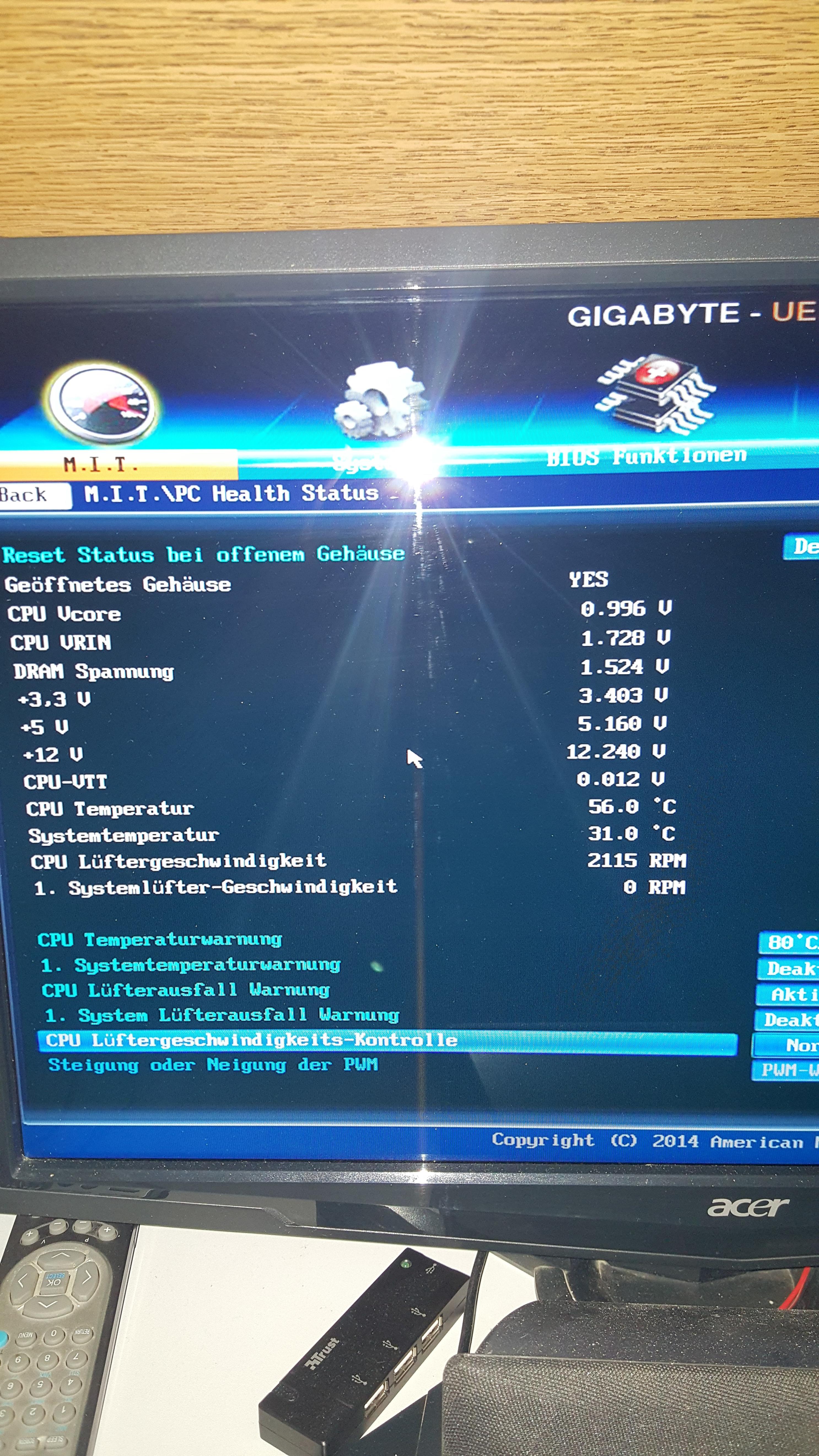 Kollege spielt mit der Karte alles oben usw kann es evtl sein ich habe mit ja die BO3 Starter Pack geholt wo man rein online spielen kann, vorher hatte ich es ja über Kollege gespielt und da war die Option immer da. So habe mal bilder gemacht vom Gehäuse Lüfter ect, war ca 15-20 min Bios da sind die Temps finde ich ok da geht er nicht höher als 56 grad und systemtemp bei 31 grad.