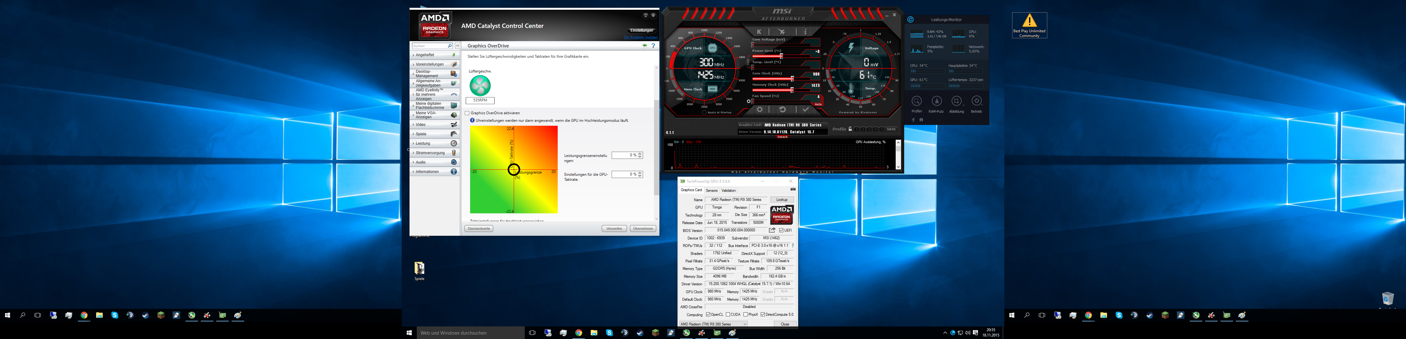 Ich hab mir heute eine neue GPU gekauft die " AMD R9 380 Gaming 4G " aber biss jetzt bin ich total unzufrieden. Auf der verpackung steht dasm sie 4 GB haben sollte aber bei MSI oder GPU-Z steht immer bloß Clock = 300-900 und MEM = IMMER 1425. ... Normaler weise müste doch bei mem stehen wenn sie ausgelastet ist 3950 oder ?? .. kann mir irgend wer helfen ? bitte? :/