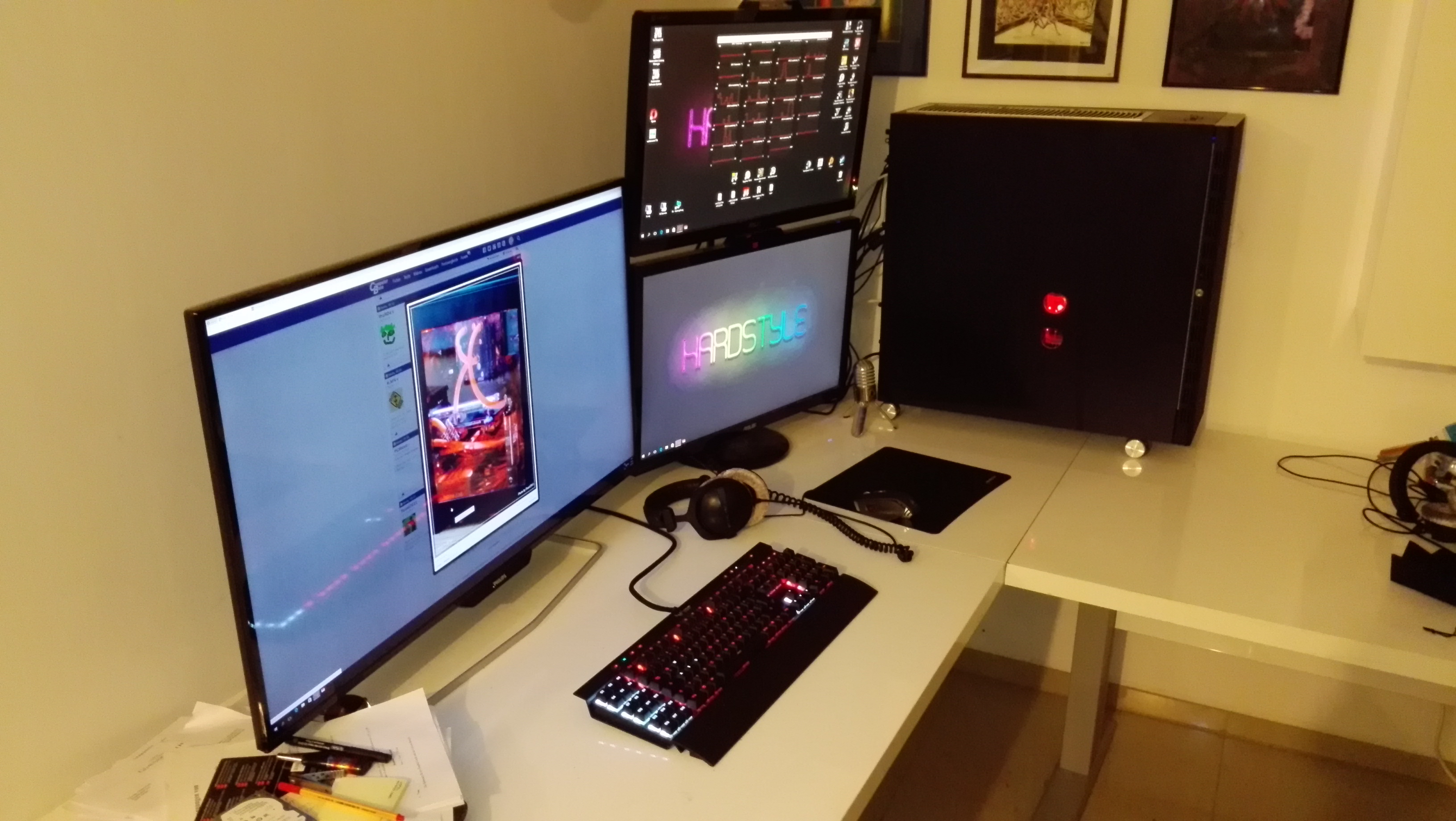 3) Fürs Gaming werden rechts und links noch jeweils ein Monitor dazugestellt (Eyefinity ist einfach geil - man muss es erleben!)