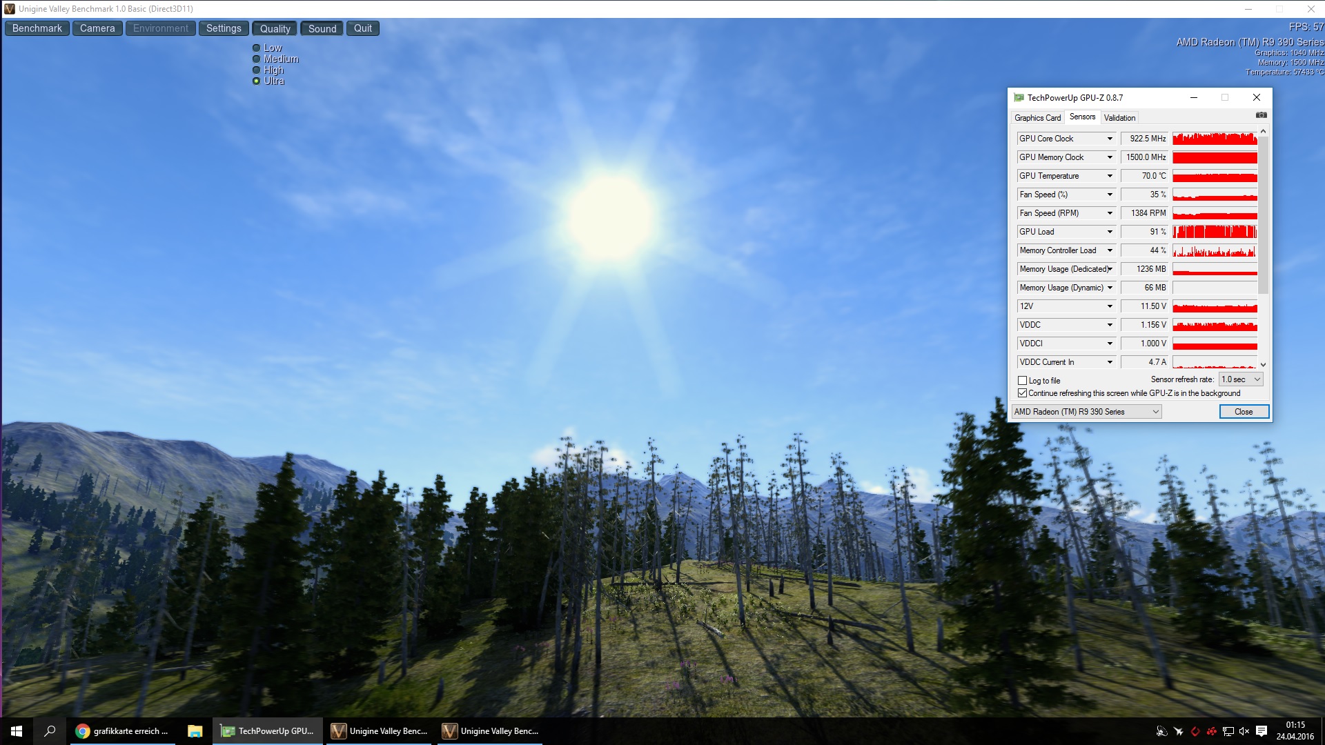 Meine Grafikkarte (MSI R9 390) erreicht unter Unigine Valle benchmark imme nur ganz kurz 1040MHZ dann springt die Karte immer wieder runter auf 800-900 ab un zu kurz 700MHZ.