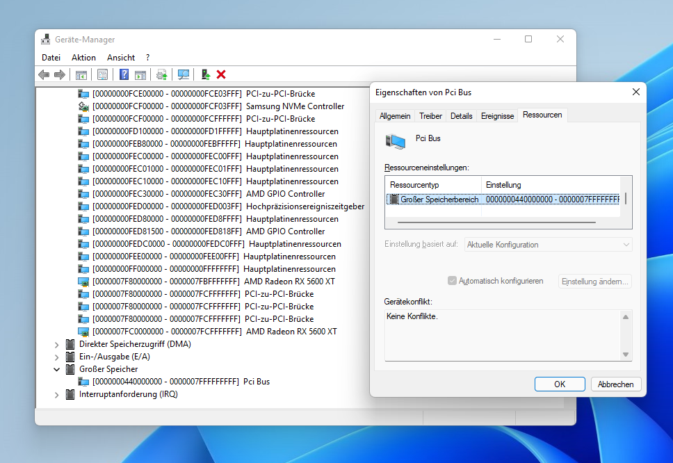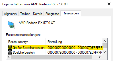 Wie zu erwarten, habe ich im Gerätemanager keine Angabe für einen Großer Speicherbereich. Dann werde ich mal bei Gelegenheit XFX kontaktieren.