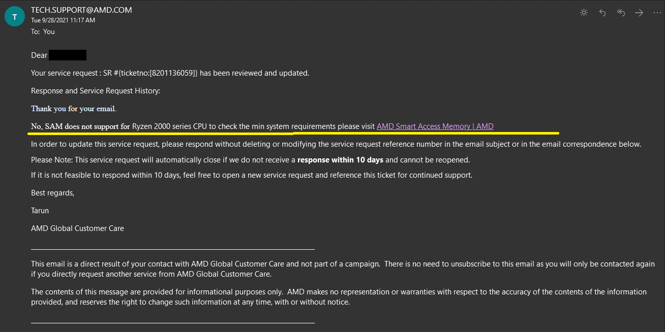Da mein System bzw. die Hardware laut AMD unterstützen sollte, habe ich dies so, mit nochmals sämtlichen Hardwareangaben inkl. Treiber+BIOS meines Systems, mitgeteilt und bekam dann heute die folgenden Aussage und bin gespannt was und ob da noch was kommen wird: