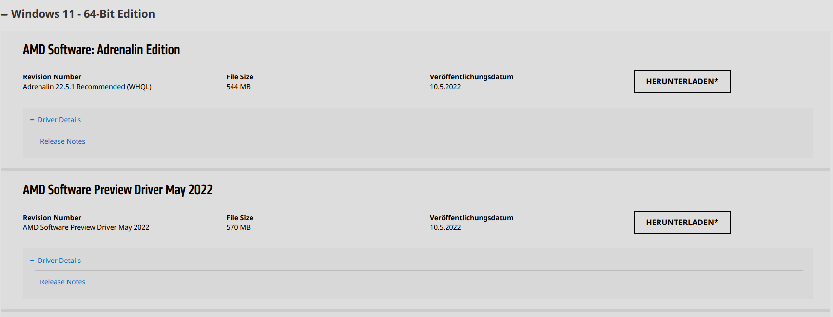 Hier ein Download link: https://www.techpowerup.com/download/amd-radeon-graphics-drivers/
