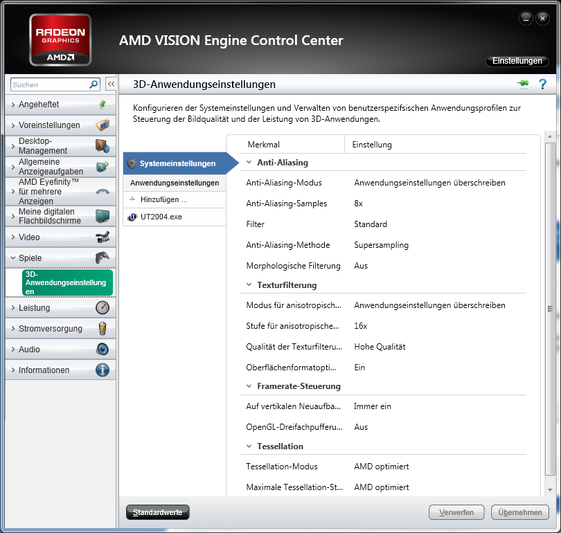 ich suche bei dieser GraKa die 3D Einstellungen. Ich kenne das von meinen älteren Karten, wo man z. B. Antialiasing-Einstellungen u.a. vornehmen konnte.