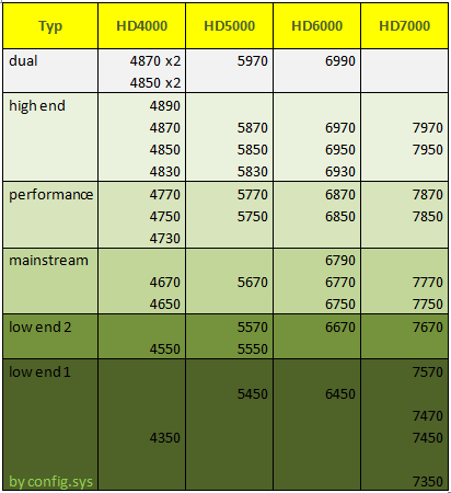 Die 77x0 Serie und die 79x0 Serie haben vollkommen unterschiedliche Chips, welche zwar auf der gleichen Architektur (CGN) basieren, aber ansonsten sehr verschieden sind.