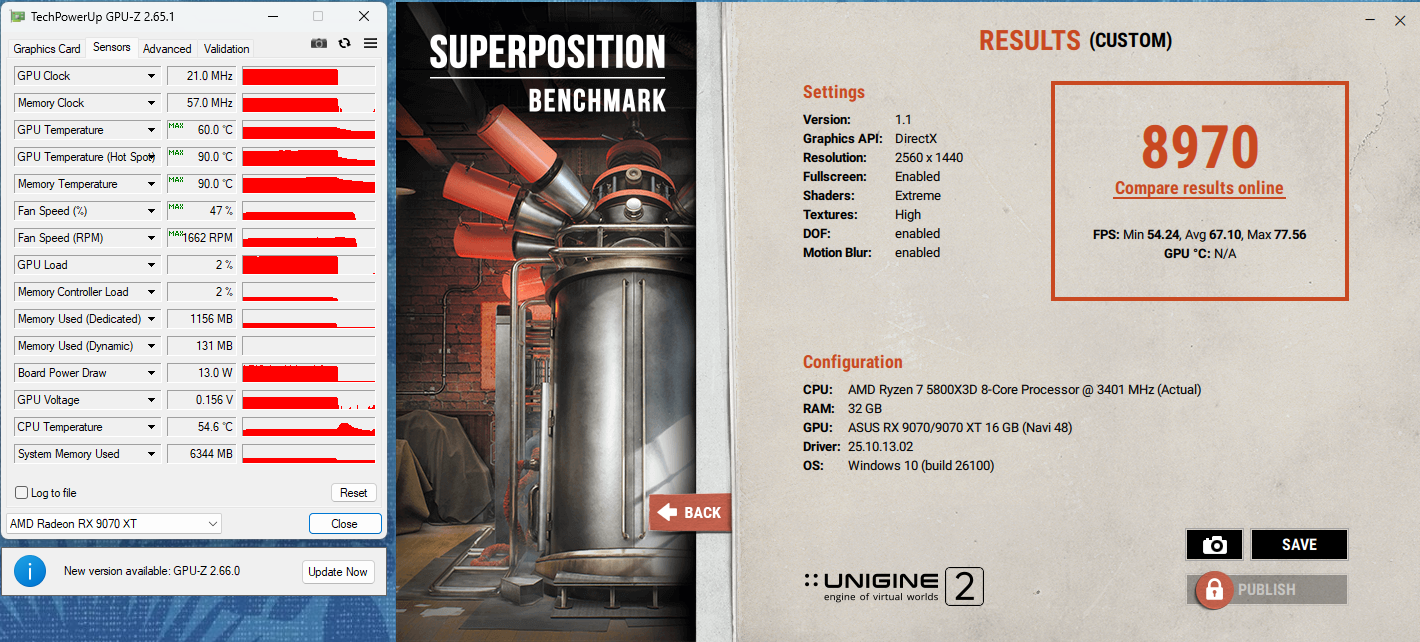 Hier meine Werte mit der ASUS Prime OC als Vergleich. Ich habe mit deinen Custom Einstellungen gebencht.