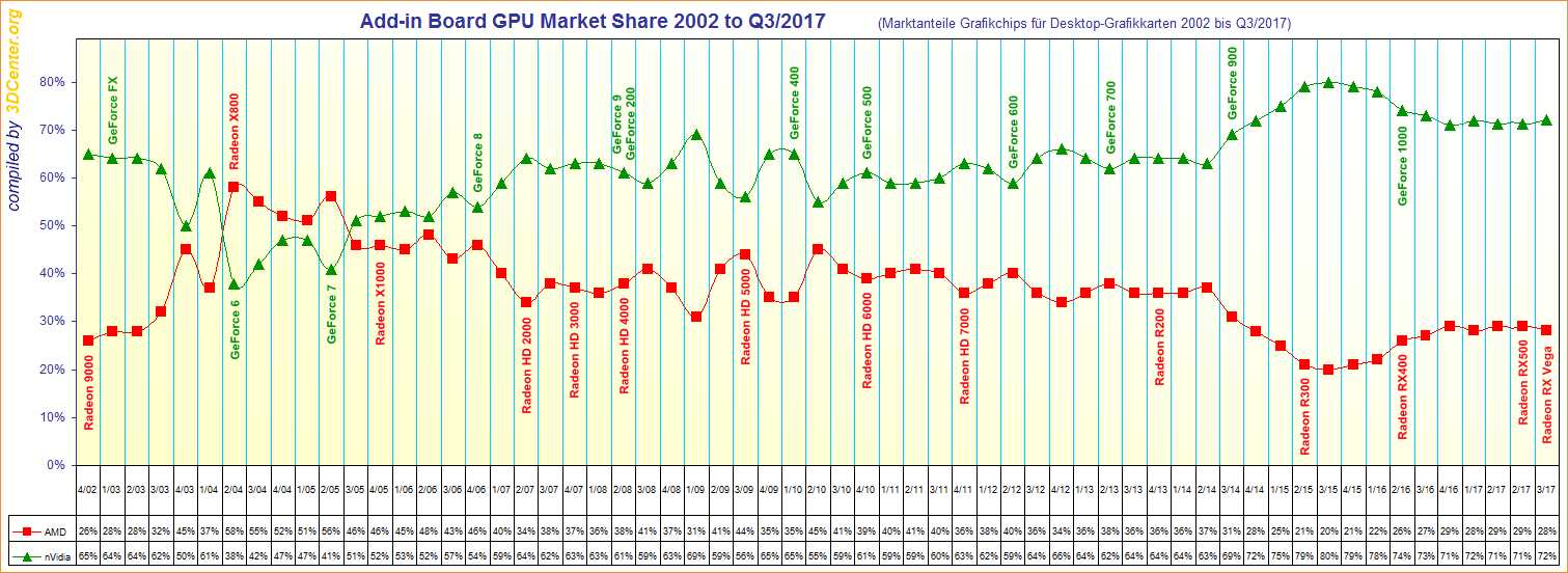 das ist der reine umsatz der beiden firmen für addin karten (desktop) - vor polaris hat amd kaum was verkauft - jetzt verkauft amd, aber von den verkäufen kommt fast nichts in den zielmärkten an: