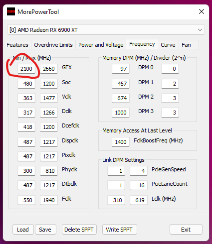 Das Hauptproblem ist, dass der Afterburner dafür eine Lösung bietet, die aber nicht funktioniert. Eigentlich müsste man bei der 6900XT auch die Frequenz/Spannung Kurve editieren können. Leider kann ich aber keine Werte verschieben. Bereits mit Afterburner 4.6.3 und 4.6.4 beta4 probiert.