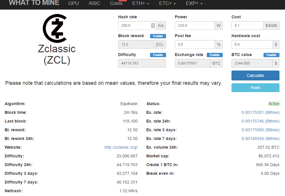 1. Du gehts einfach auf https://whattomine.com und KLICKST auf den Namen des Coins den du minern willst. Dann kommst auf die entsprechende Seite des Coins wo man den Kurs der letzten Tage im Durchschnitt angezeigt bekommt... Im klassischen Link Blau!