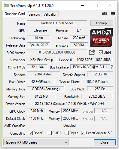 Habe erst im nachhinein gemerkt, dass WattMan mich nur 1170mV einstellen lässt, daher ging der Wert in Settings wieder auf 1150mV zurück, und was anlag sieht man ja im Screen. Zugegeben, wirklich stable ist es nicht, der Treiber schmierte nach 2min ab. Bei den 1,2V und mehr die aber bei den 580er anliegen kein Wunder dass hier mehr Takt drinnen ist.