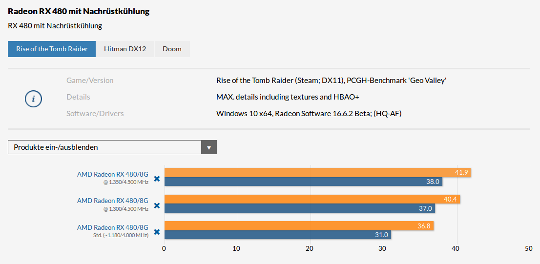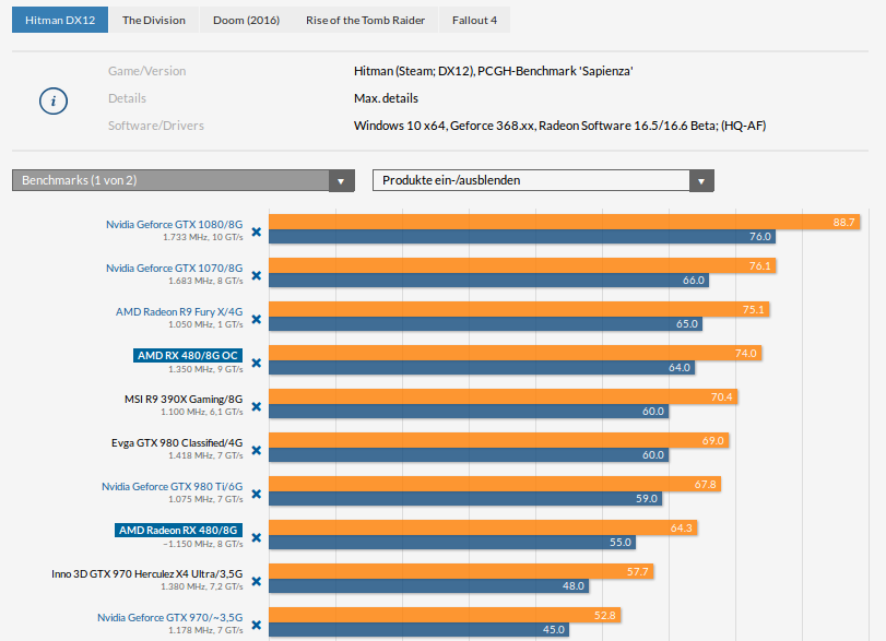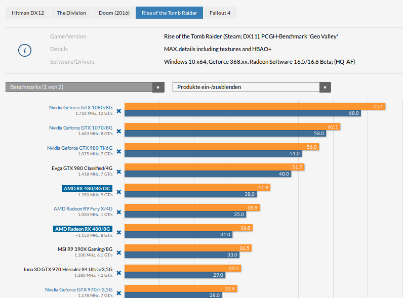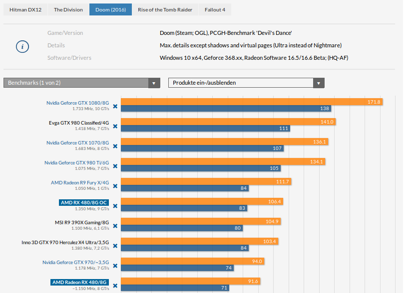 Kommt jetzt auch nicht mit Cherrypicking, Tombraider und Doom liegen der RX480 bekannterweise nicht so gut