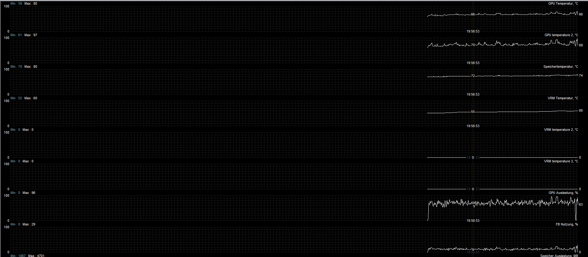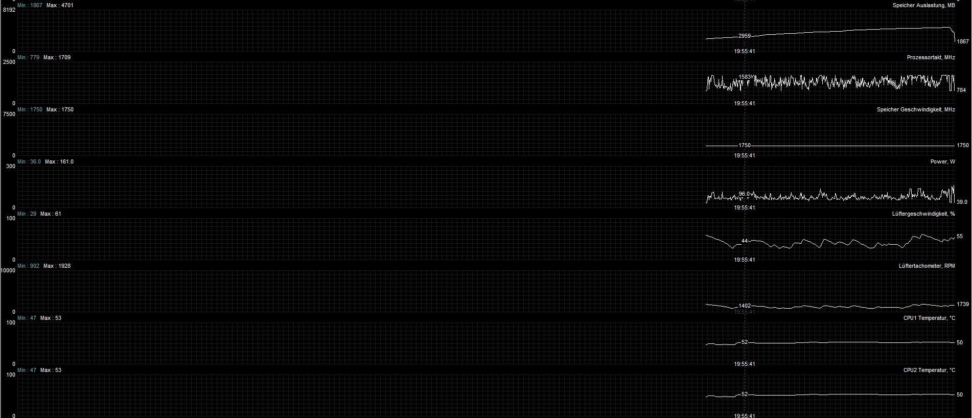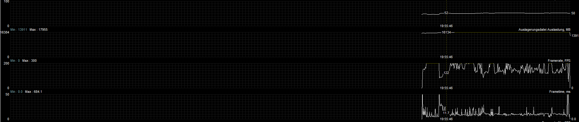 Ich habe jetzt mal eine Runde gespielt und die Daten via MSI Afterburner aufgenommen. (Siehe angehängte Fotos).