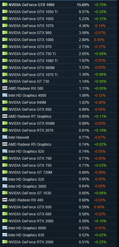 Machte auch eigentlich keinen Sinn die Liste noch weiter zu verfolgen, ich denke die Frage wurde damit auch so ausreichend beantwortet. Die Radeon RX570 liegt dort derzeit auf Platz 39 (wenn ich richtig gerechnet hab), die GTX 1050Ti hingegen auf zwei.