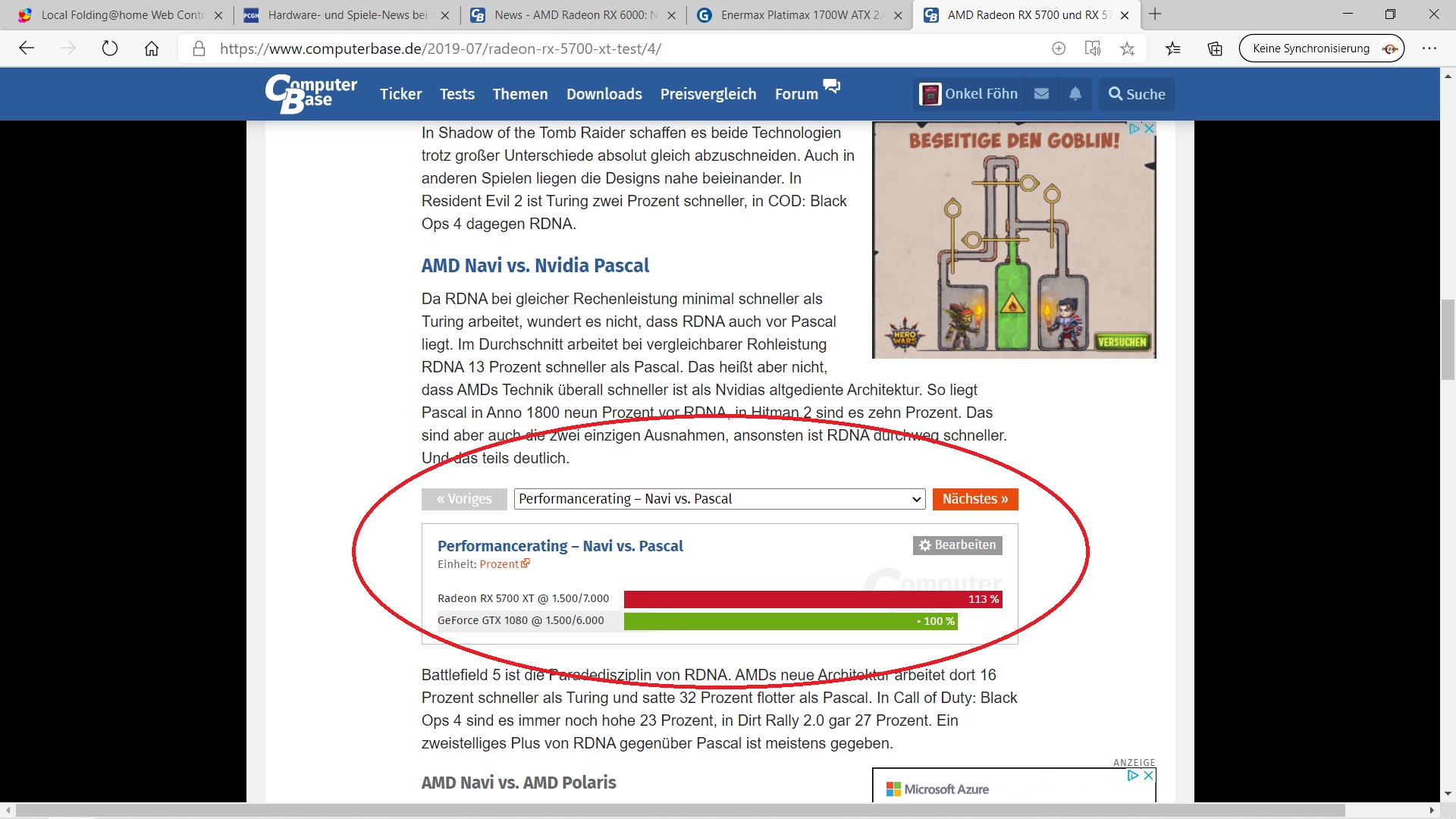 Da Navi mit RDNA1 schon effizienter (wenn auch nur 1 %) ist als Turing, rein auf die Architektur bezogen (also bei gleichem Takt der CPU und RAM), Siehe Anhänge.
