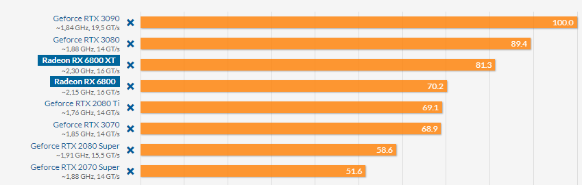 Die rx6800 und rx6800xt haben bis zu 33% cu Differenz allerdings taktet die rx6800 auch 200mhz höher