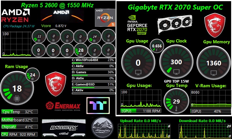 Ich bin mit dem Ryzen 5 2600 / Crucial Ballistix Sport 2 x 16 GB 3200 / WD Black NVME 500GB als OS Partition / Gigabyte RTX 2070 Super jetzt so zufrieden, weil endlich alles stabil läuft wie schon lange nicht mehr.Das Strix X470 Gaming-F Motherboard wurde auch getauscht (wegen der sehr launischen Lüftersteuerung) gegen ein MSI B450 Gaming Pro Carbon AC im März 2020