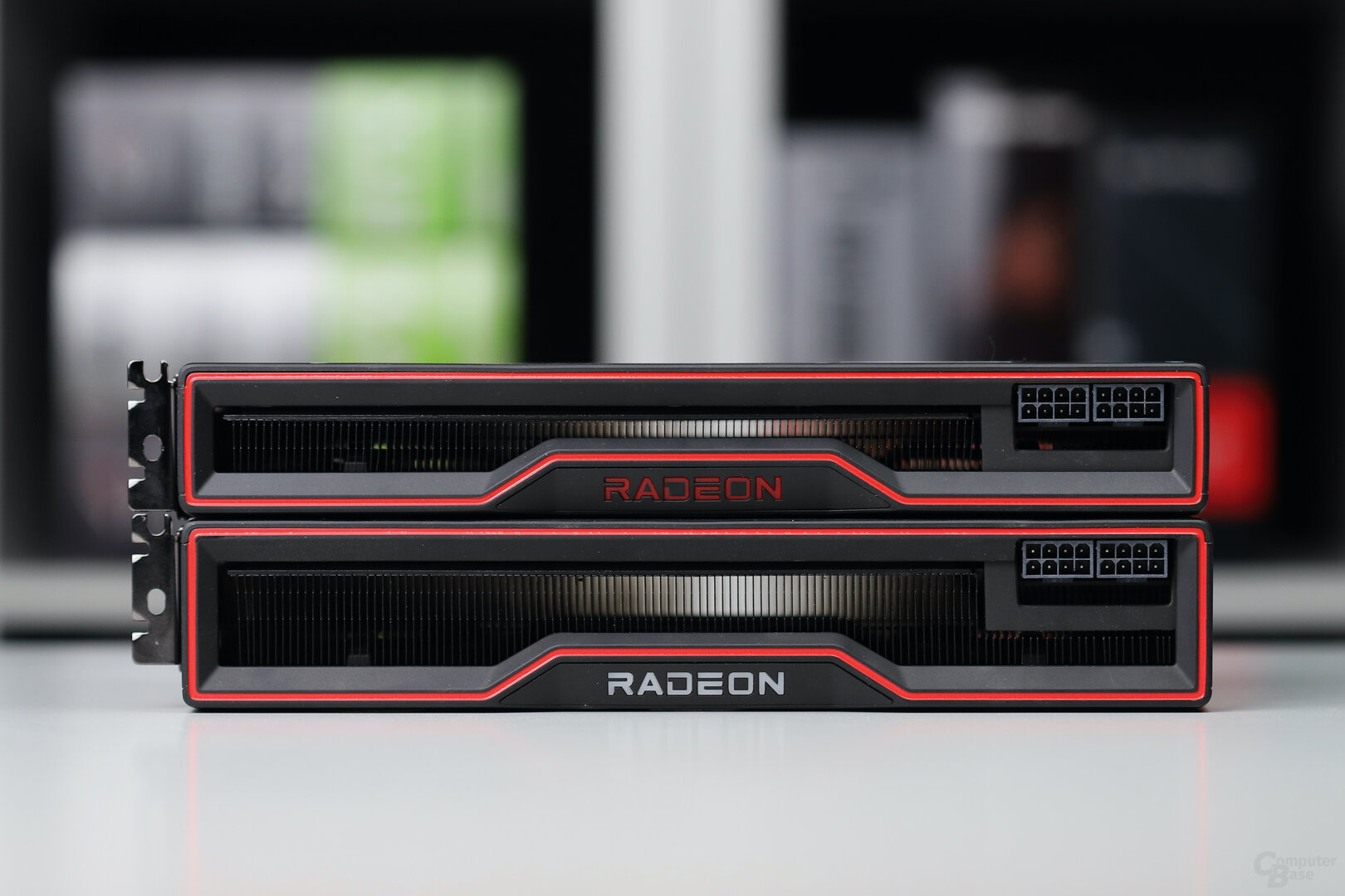 Von vorne finde ich die AMD Karte sehr Schön. Das Rotumrandete müsste RGB haben das wäre dann was für mich. würde mit dem Fächer vorne richtig Edel aussehn.