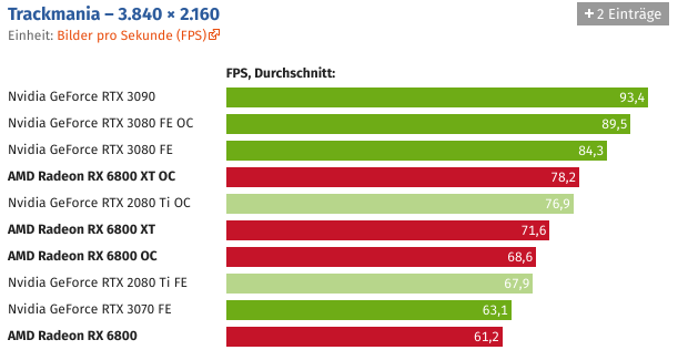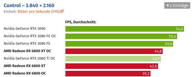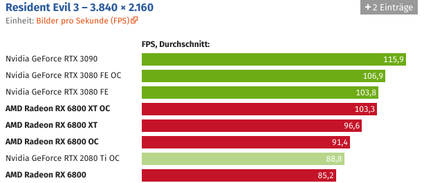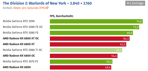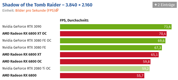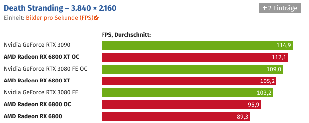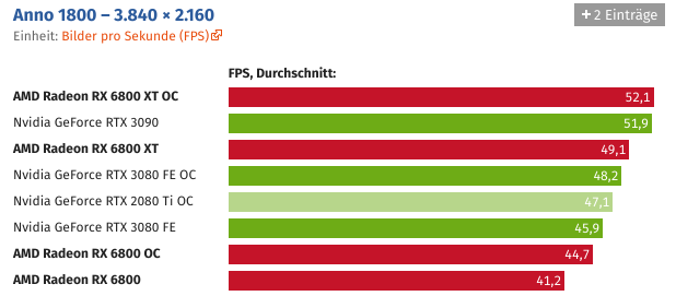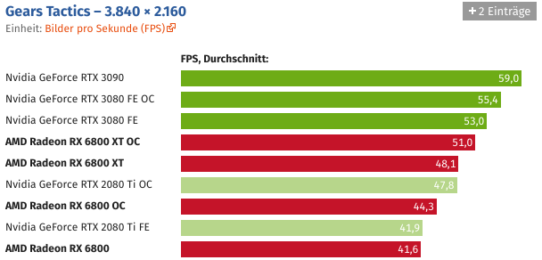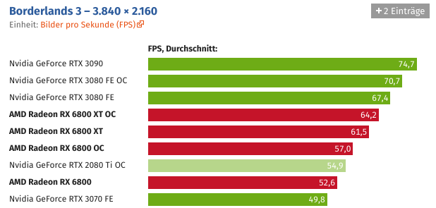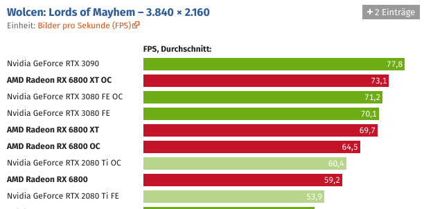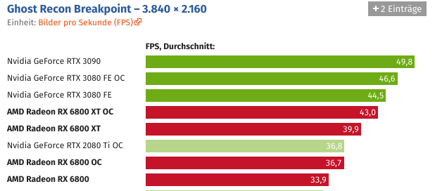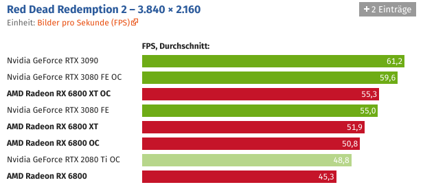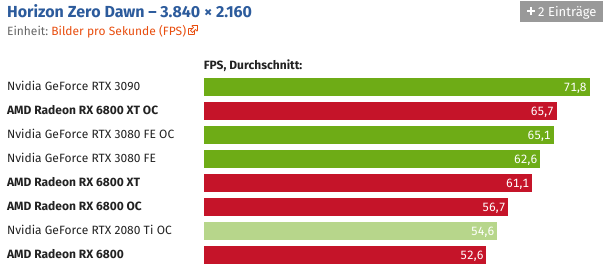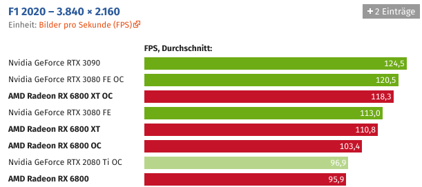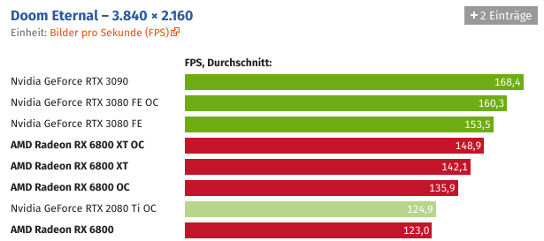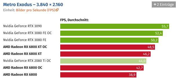 Und wer die Grafikkarte übertaktet, kann Navi 21 auch ohne Spannungserhöhung auf knapp über 2,5 GHz bringen. Der Sprung ist schon für sich beachtlich, noch beachtlicher wird es unter Berücksichtigung des Stromverbrauchs, der durch den hohen Takt nicht negativ beeinträchtigt wird.