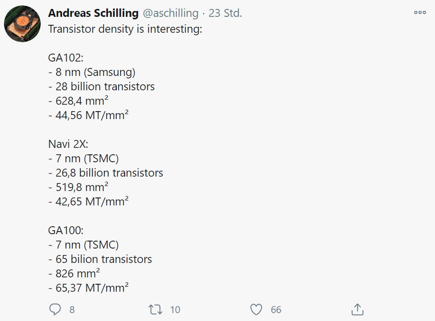 Es kam mal die Frage der Packdichte für die verschiedenen Chips:
