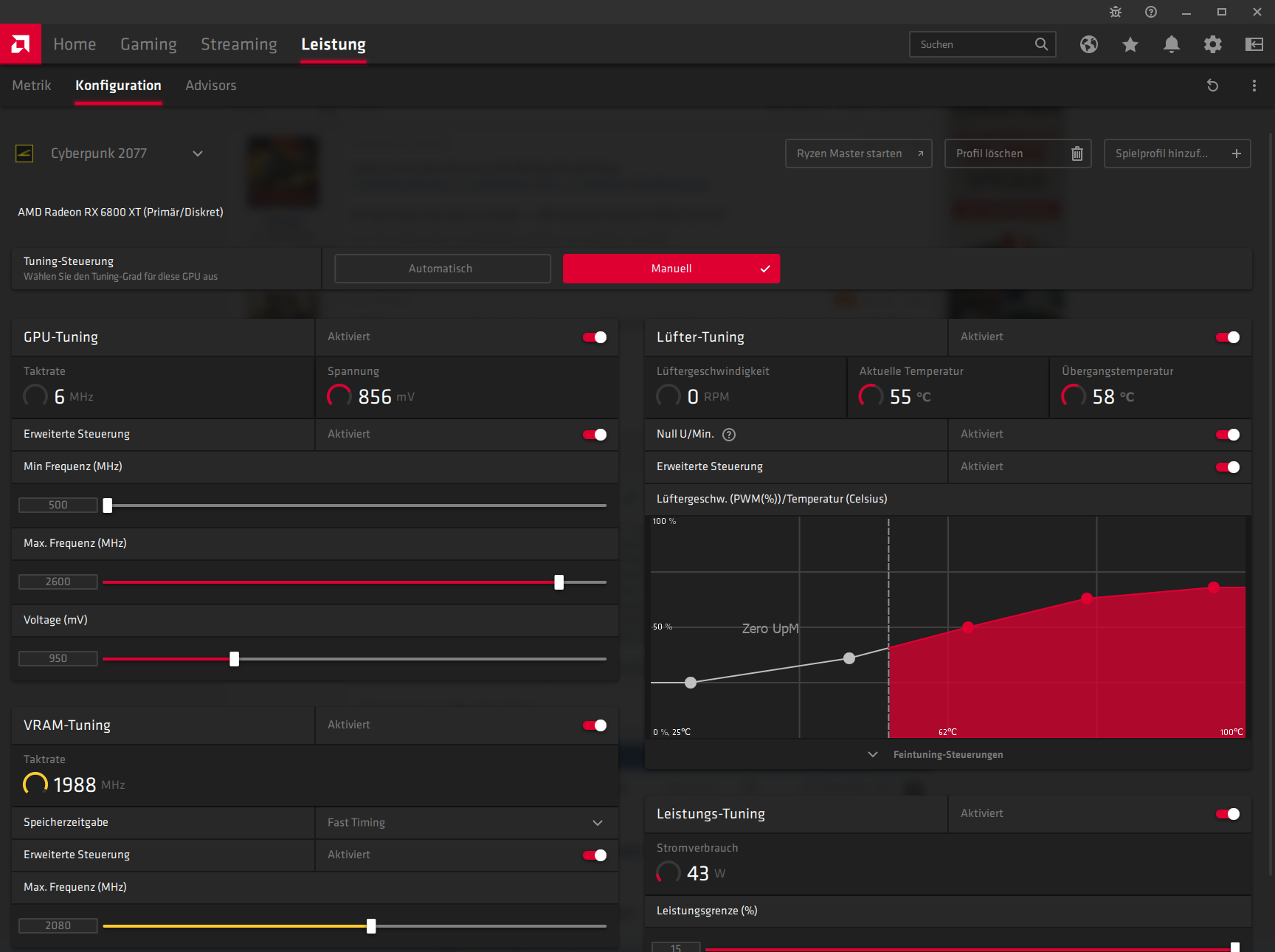 Bei mir wird die MSI 6800 XT Gaming Z nach dem Undervolting lauter!? Die Temperaturen sind deutlich niedriger und der Verbrauch auch. Scheint wohl ein Problem mit dem Airflow im Gehäuse zu sein bei mir.