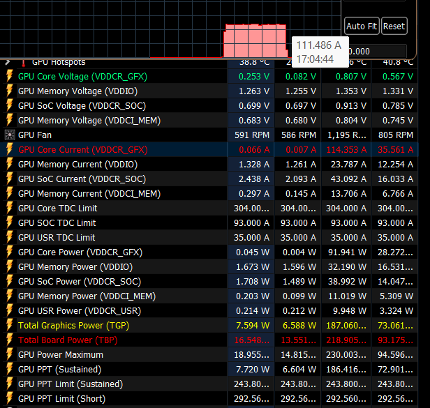 Das muss ich mir nochmal ansehen - ich hatte mal gemessen, dass der SoC erst bei hohem Takt (~2600+) angefangen hatte messbar durstiger zu sein, und deshalb dann die Hälfte zwischen Basistakt und maximalem OC-Takt für alles gewählt, was sehr effizient sein will, aber evtl. war meine damalige Messung da ungenau.Creekground schrieb:Den Vram habe ich zurück auf 2438MHZ gesetzt. Sonst hätte er 4 Watt verbraten.