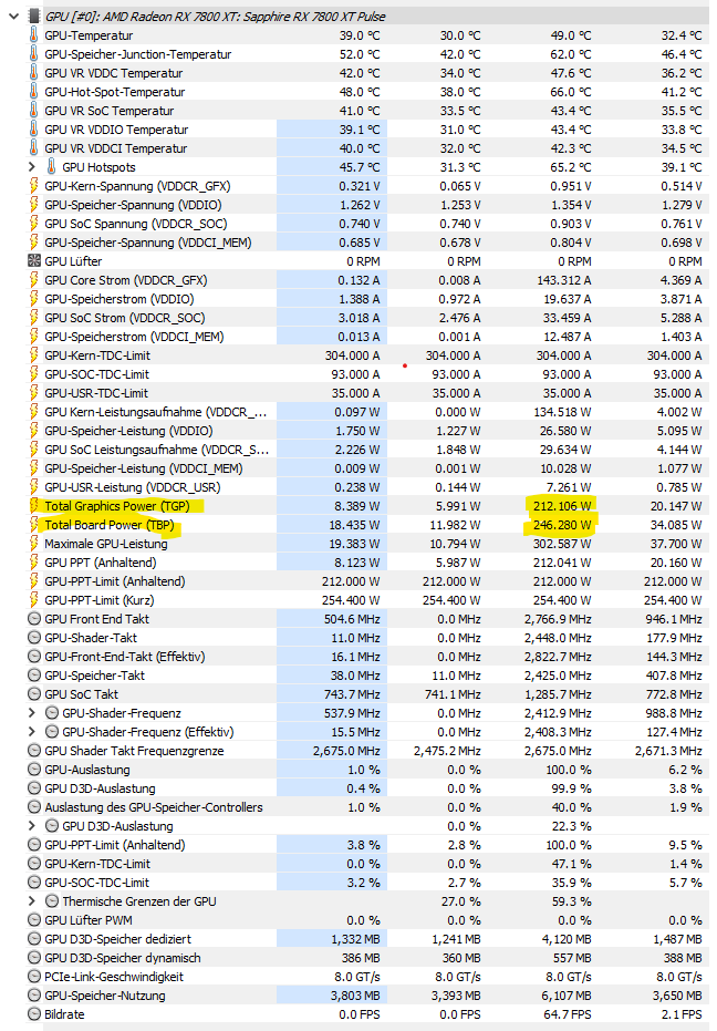 Alle diese Messungen sind nur dynamisch wieviel die GPU gerade verbraucht. Die PCie musst dir halt selbst drauf rechnen. Werden ja eh immer dazu addiert. Ist also quasi statisch...