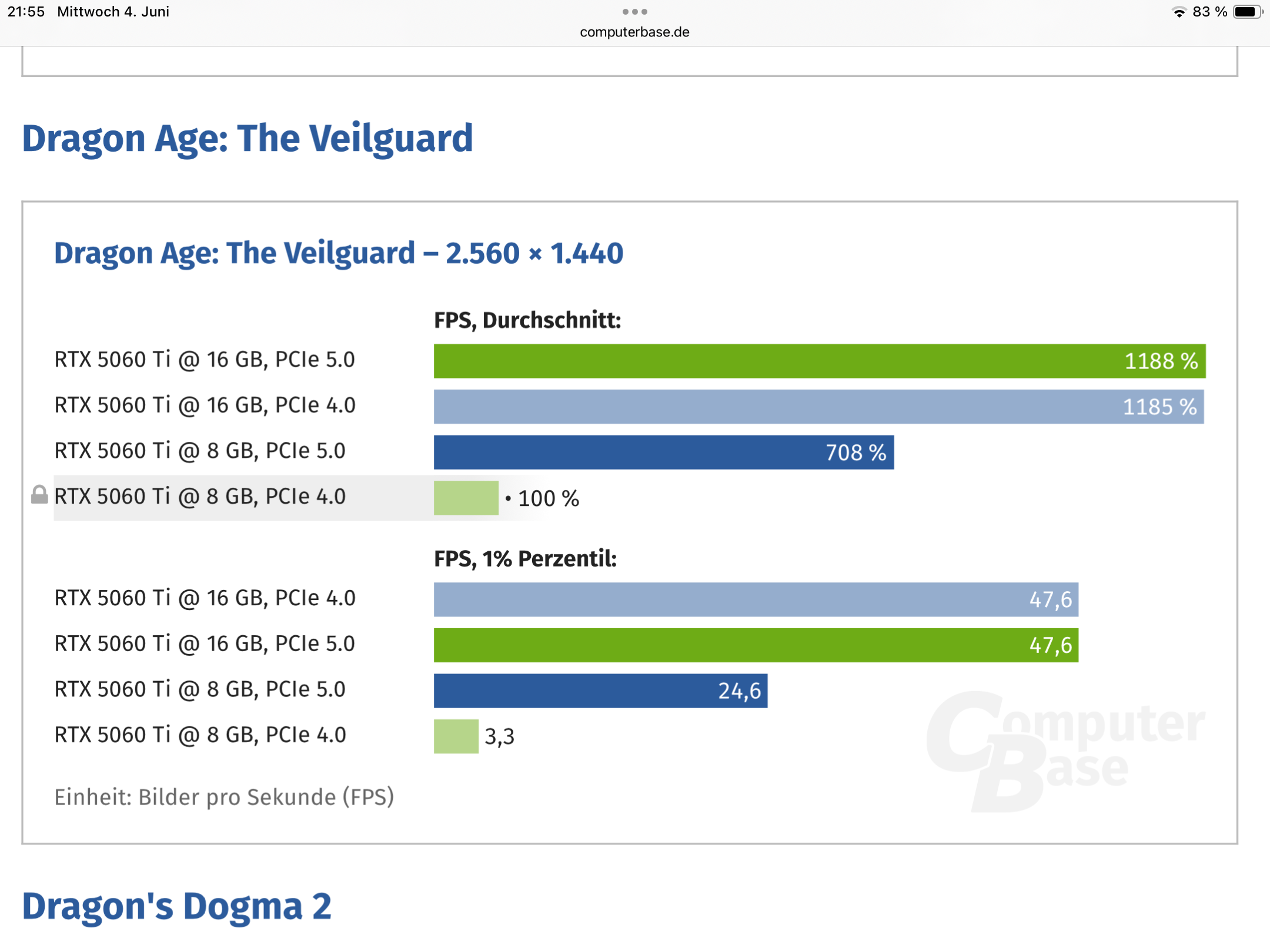 bei 16GB ist das irrelevant die 8GB Karten im Speicherlimit interessiert PCIe 4/5 und 8/16 lanes aber teils durchaus, nur gibt es eben keine gescheiten tests bis jetztSunweb schrieb:Ka warum das seit 6 Wochen immer und immer wieder durchs Forum geistert.