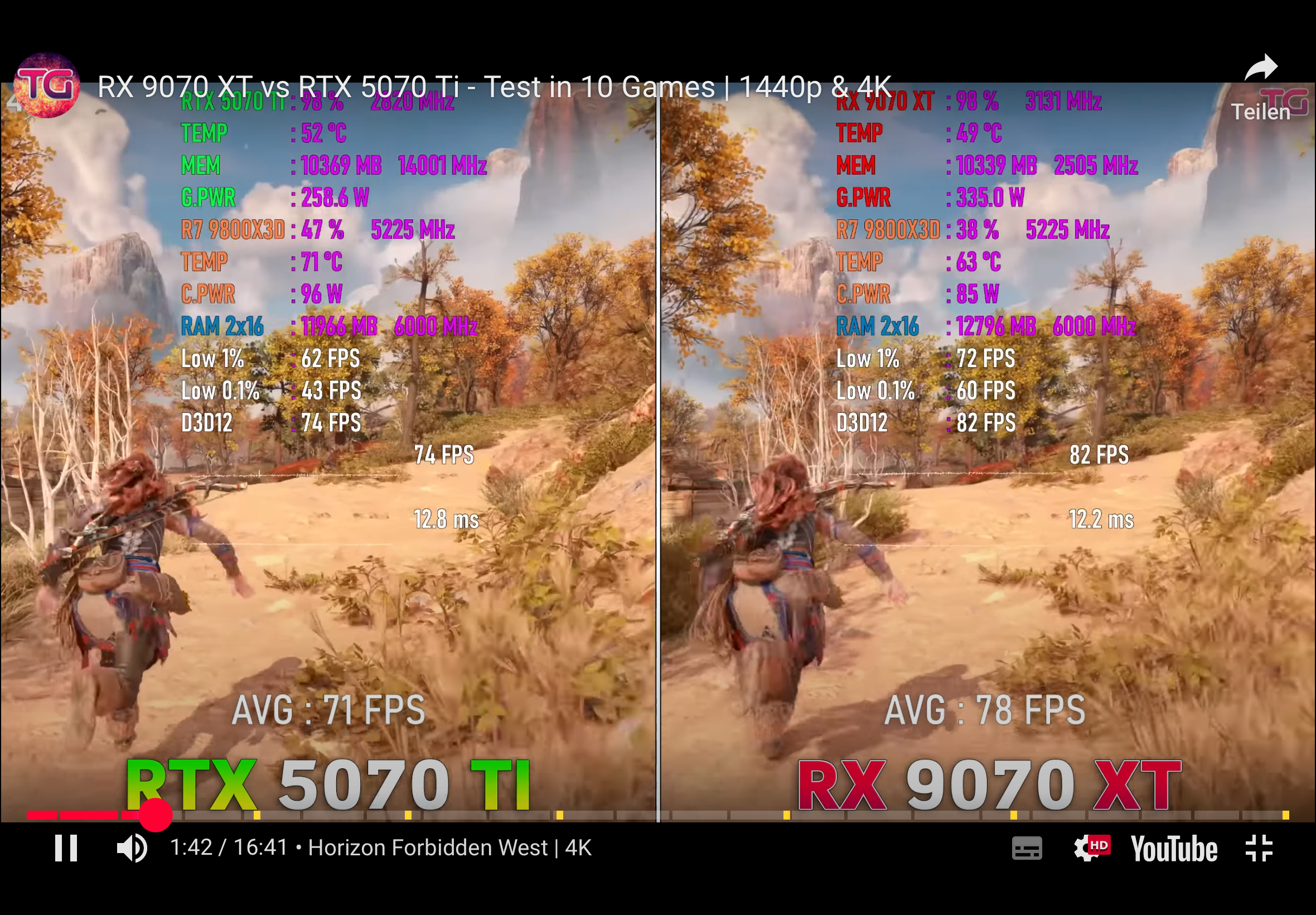 mir ist klar das die schnellste CPU auch die meisten fps bringt, ich möchte einfach nur wissen auf wieviele fps ich mit eine 9070xt oder 5070ti verzichte wenn ich anstelle eines 9800x3d wie in meinem Fall bei einem 5800x3d bleibe und ob AMD bzw Nvidia besser mit einer schächeren CPU zurecht kommt.