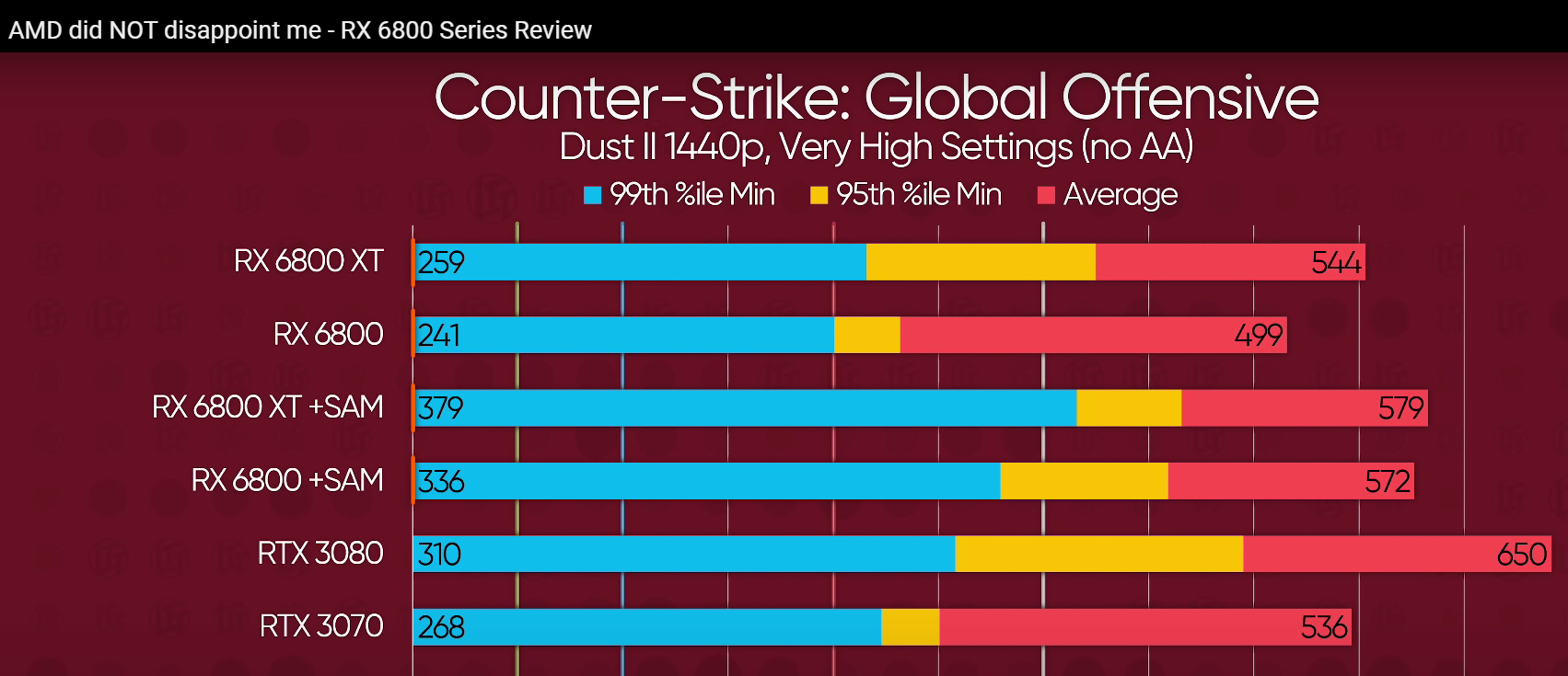 Für "kleine" Auflösungen sind kleinere Chips mit hohem Takt nun einmal deutlich besser. Frag mal bei Nvidia, wie die gerade kotzen, dass ihre Rohleistung nicht in FPS umgewandelt werden kann, da die Games diese einfach nicht benötigen. Über RAM Bandbreite, pseudo Cache und Optimierungen wie SAM, reden wird dann noch gar nicht.
