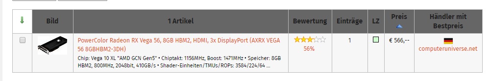 - Zur News: AMD Radeon RX Vega 56: „Limitierte Stückzahl“ für 409 Euro verfügbar