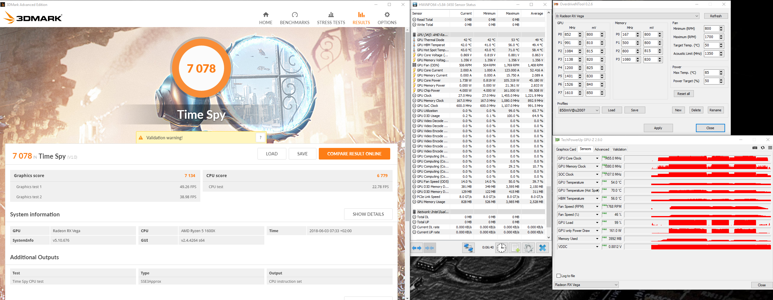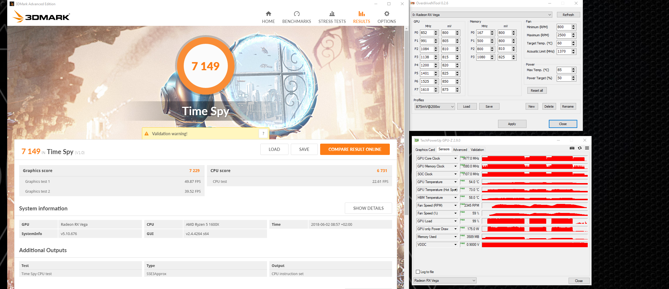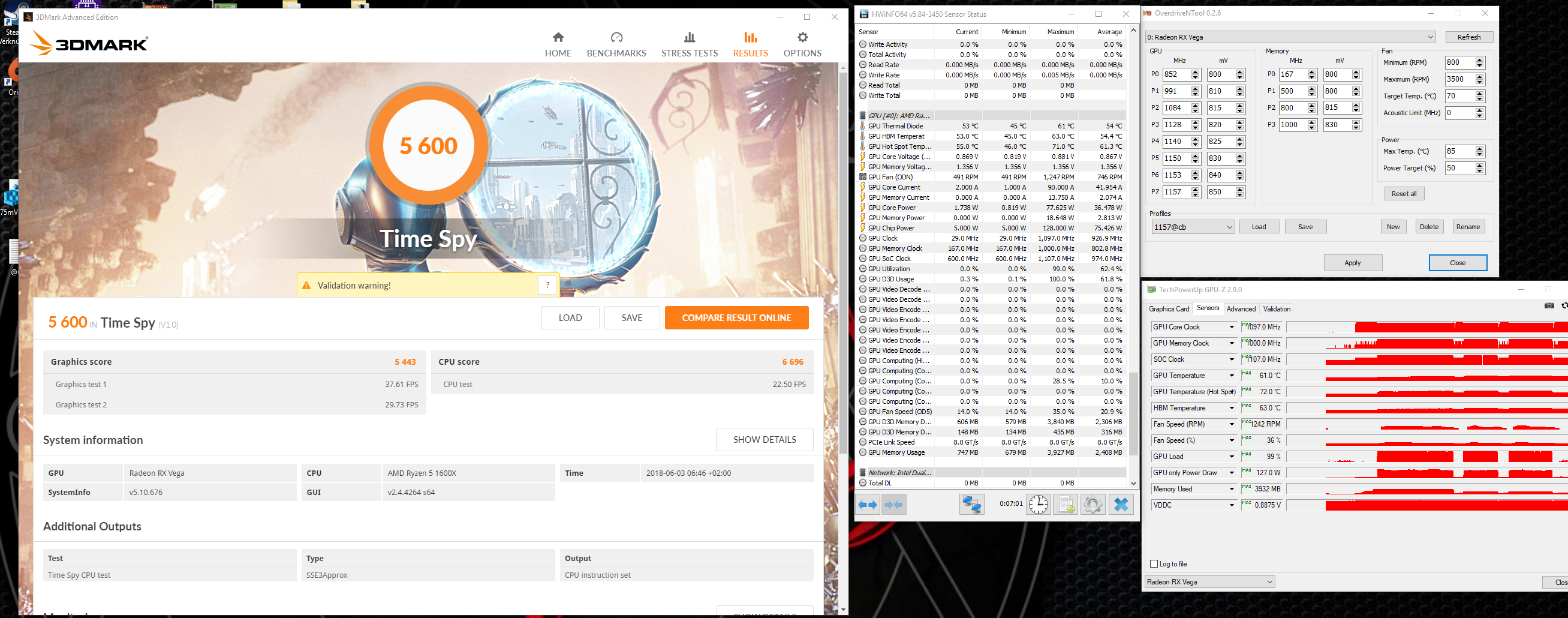 Zu deinen Spannungen. Kannst du diese denn mit HWiNFO validieren? Meine Frontier kann mit den Consumermodellen zwar nicht mithalten was UV angeht, aber ich bezweifle doch arg dass du bis 1600MHz bei 875mV kommst.