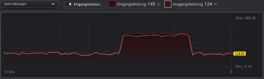 Hab ein paar Stromzähler im Sicherungskasten und das Setup hier hat zu keiner Zeit mehr als 472W aus der Dose gesuckt. Spannungsspitzen sehe ich keine, dazu sind die Messintervalle einfach in zu großen Abständen.
