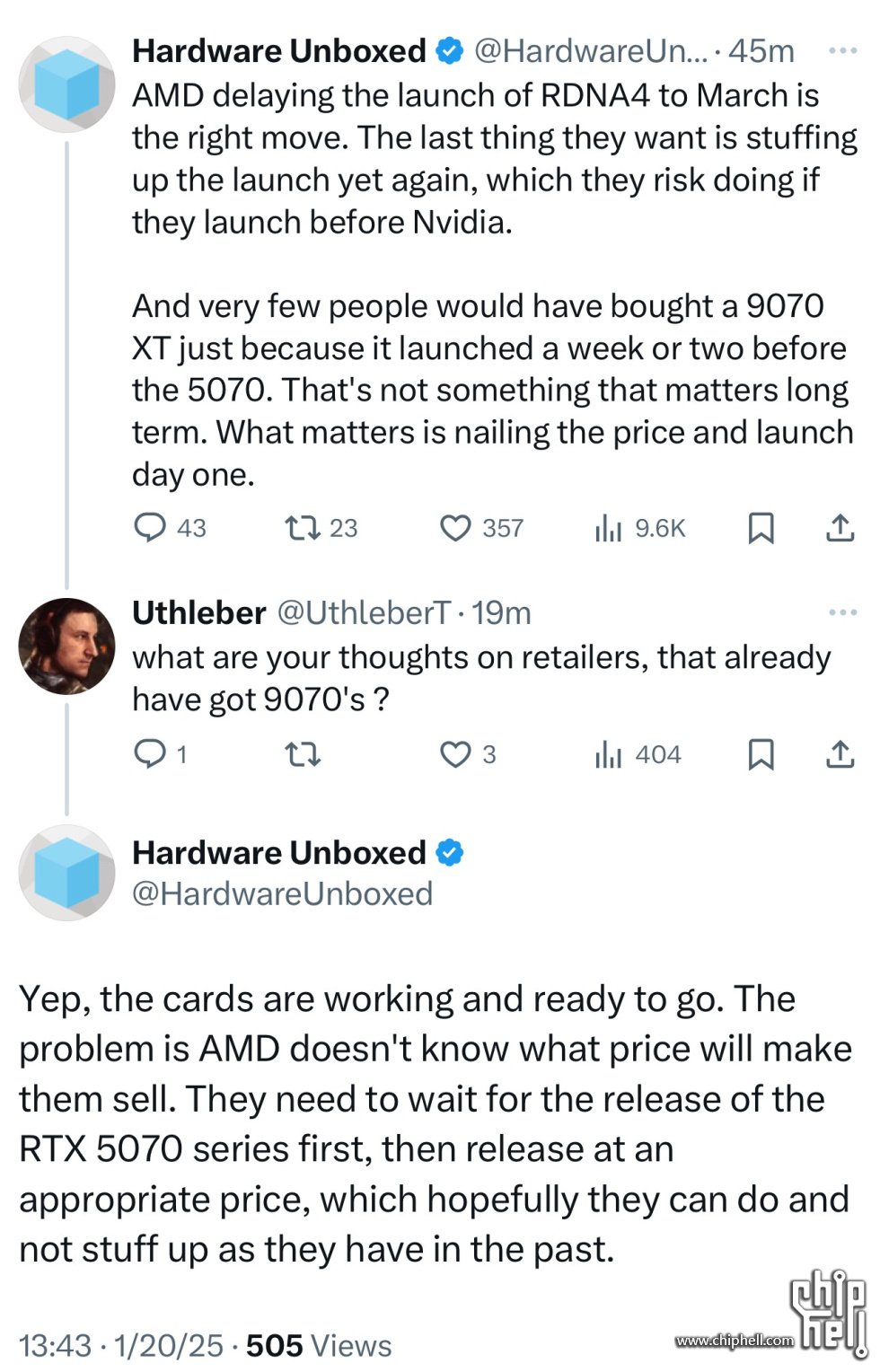 Theorie: Vielleicht hat AMD einen Produktionsslot für GDDR7 Speicher bekommen. Neue Speicherchips wären in 2 Monaten machbar, einfach umlöten und BIOS flashen. Das wären dann 10-15% mehr Leistung und damit RTX 5080 Niveau für 1000€+.