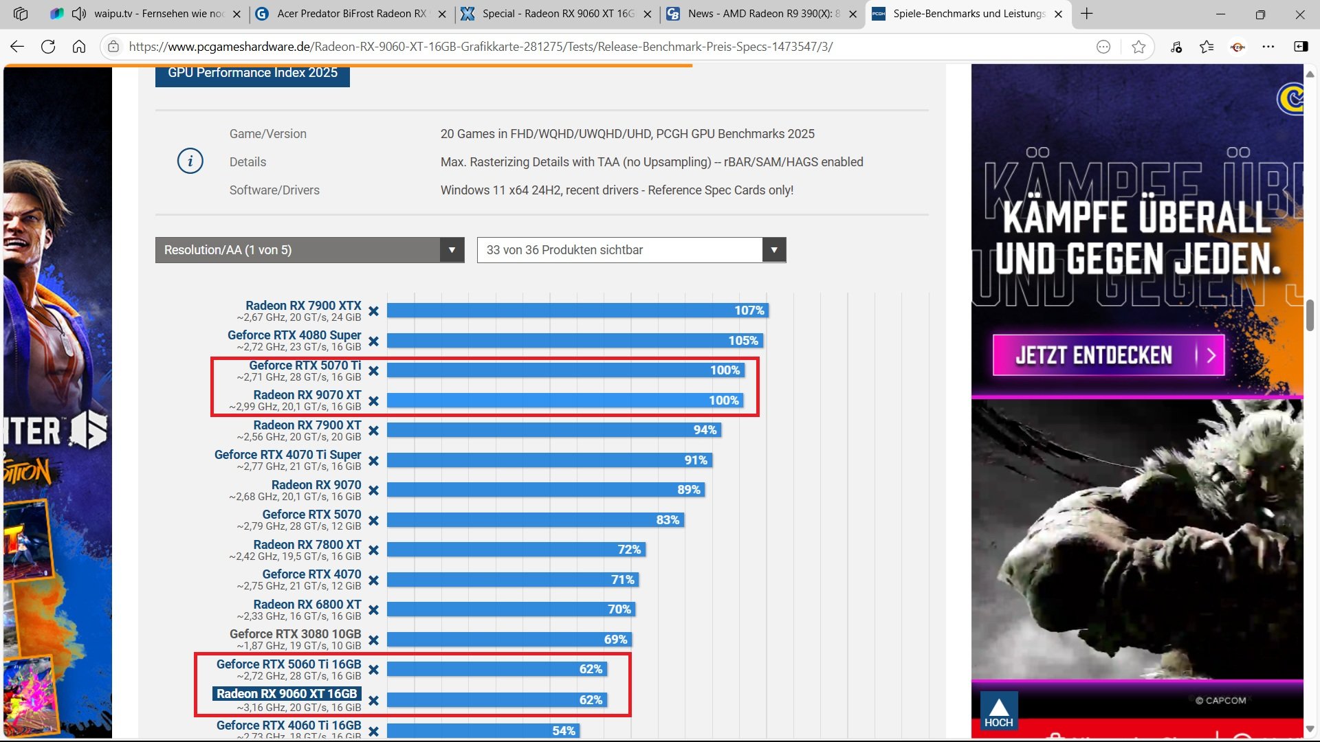 Macht irgendwie wenig Sinn die GRE hier anzubieten. Sie ist preislich oberhalb einer RX 9060XT 16GB positioniert.