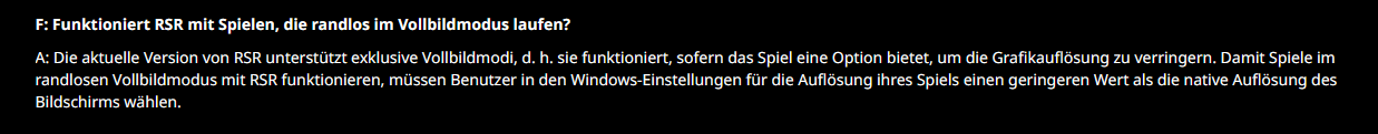 Der Treiber erkennt zwar das das Spiel läuft, aber weder RSR noch das "Radeon Bildschärfen" zeigen eine Wirkung.