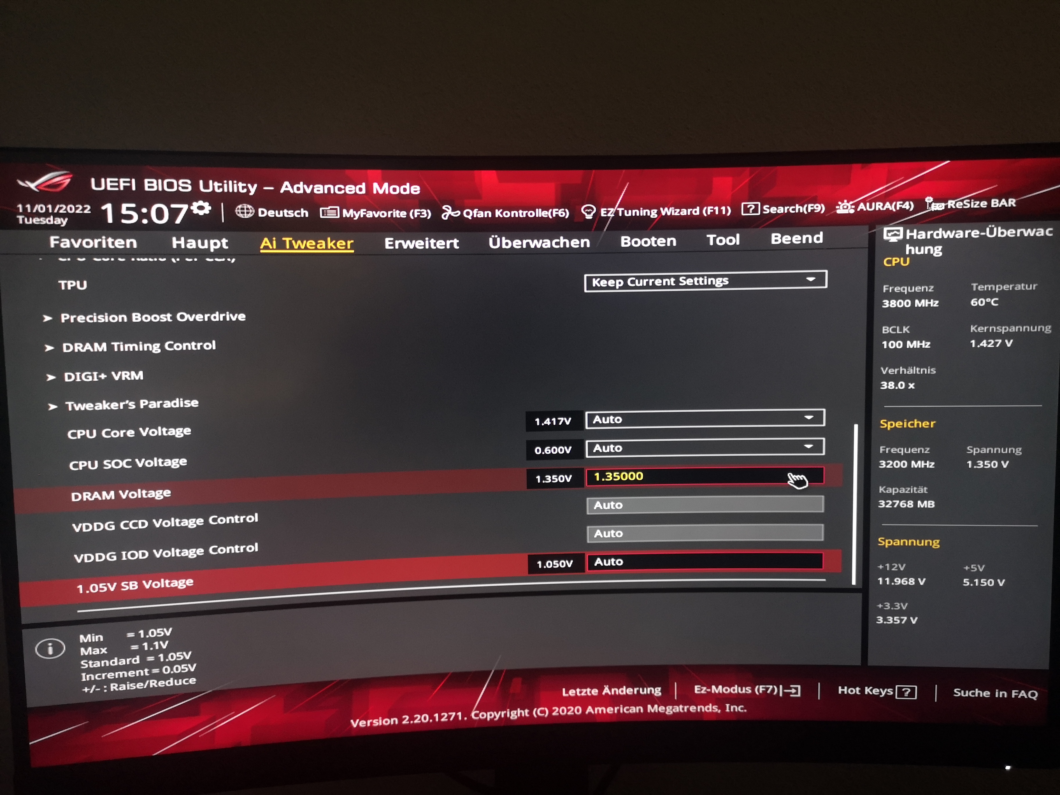 Ram: G Skill Tridentz 3600mhz laufen aber auf 3200mhz