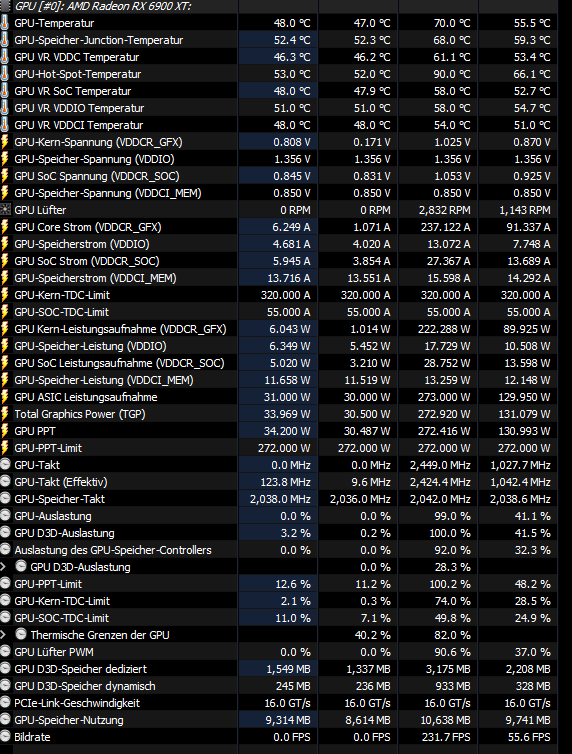 ich nutze die 6900xt Referenz und habe die Werte aus dem ersten Post übernommen.
