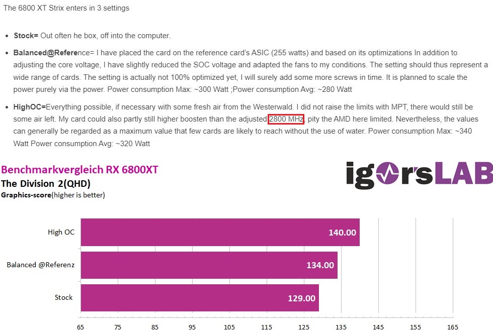 Bei meiner 6950XT ist die Höchstleistung auf ca. 2,4 GHz unter Last eingestellt. Mit identischem MPT Profil und lediglich reduziertem Takt bei ansonsten identischem Treiber Profil