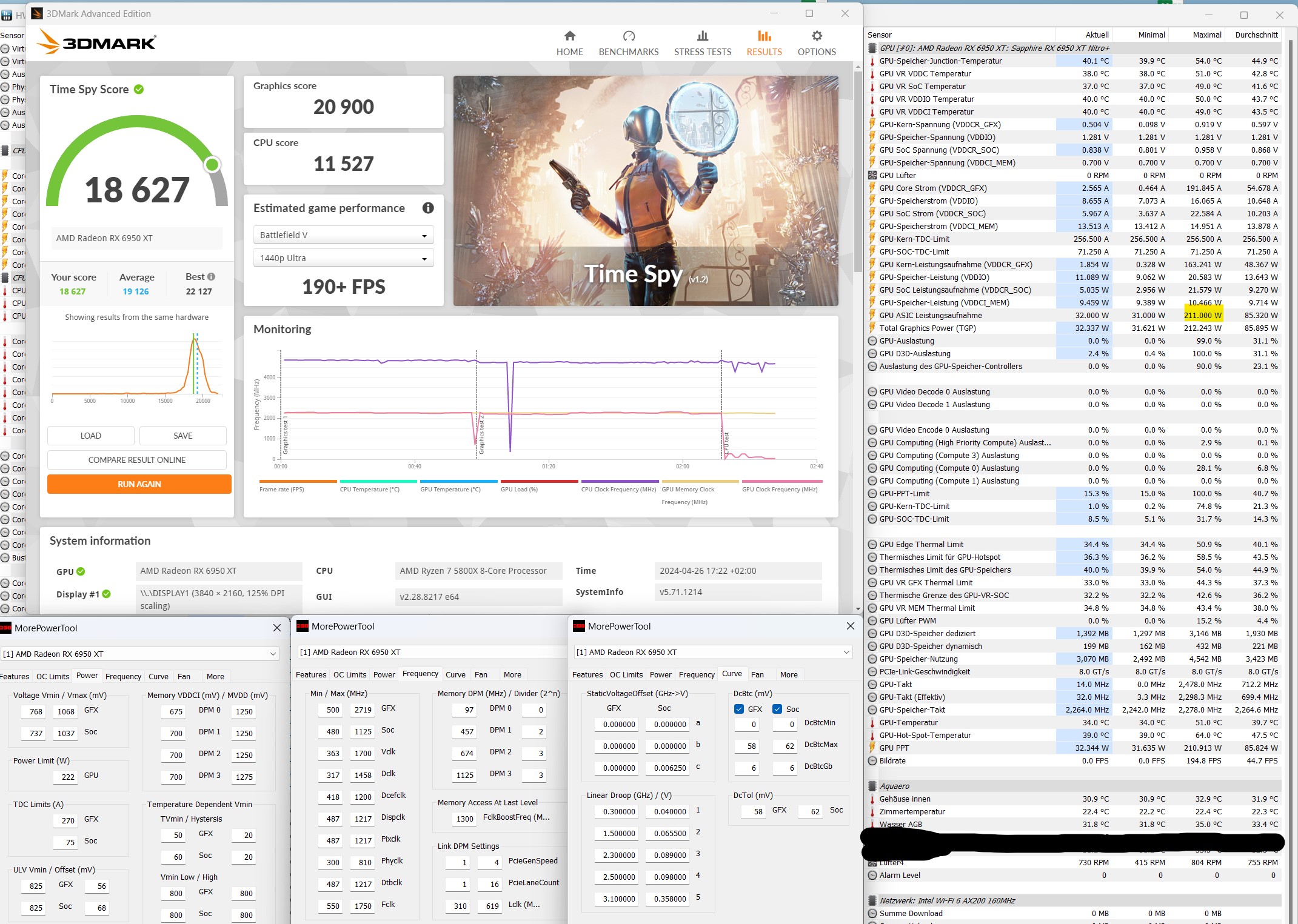 Wie damals beschrieben arbeite ich mit dem MPT, dem RadeonSoftwareSlimmer und der Leistungskonfiguration des AMD Adrenalin Treibers.