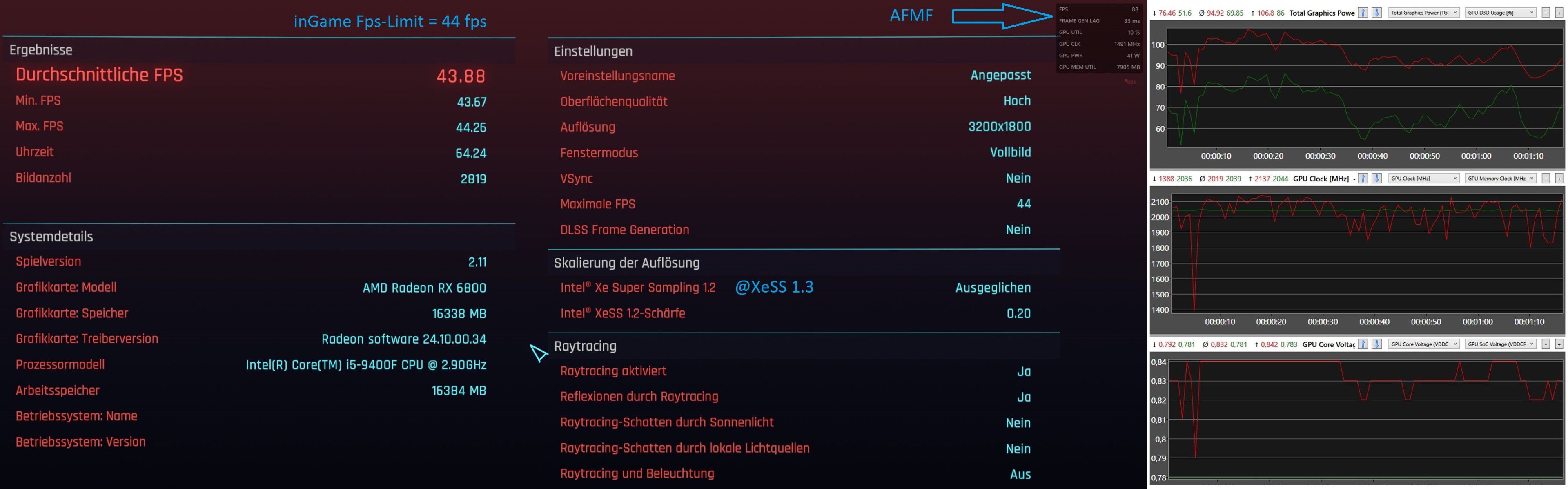 In CP2077 ist XeSS1.3 zusammen mit AFMF ruhiger bezgl. Volts, ... kann sein, das RT den Takt gleichmäßiger