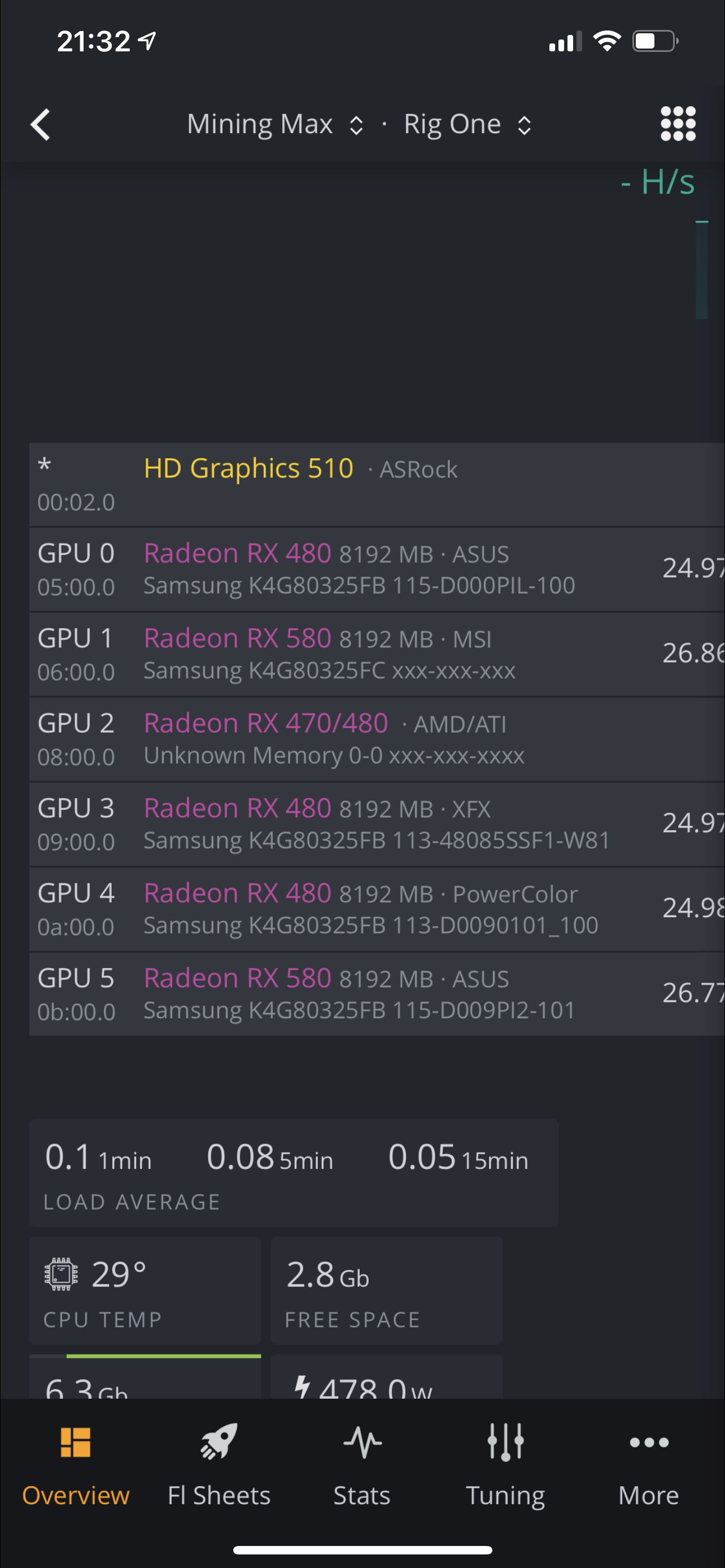 - Mainboard: AsRock H110 BTC pro +