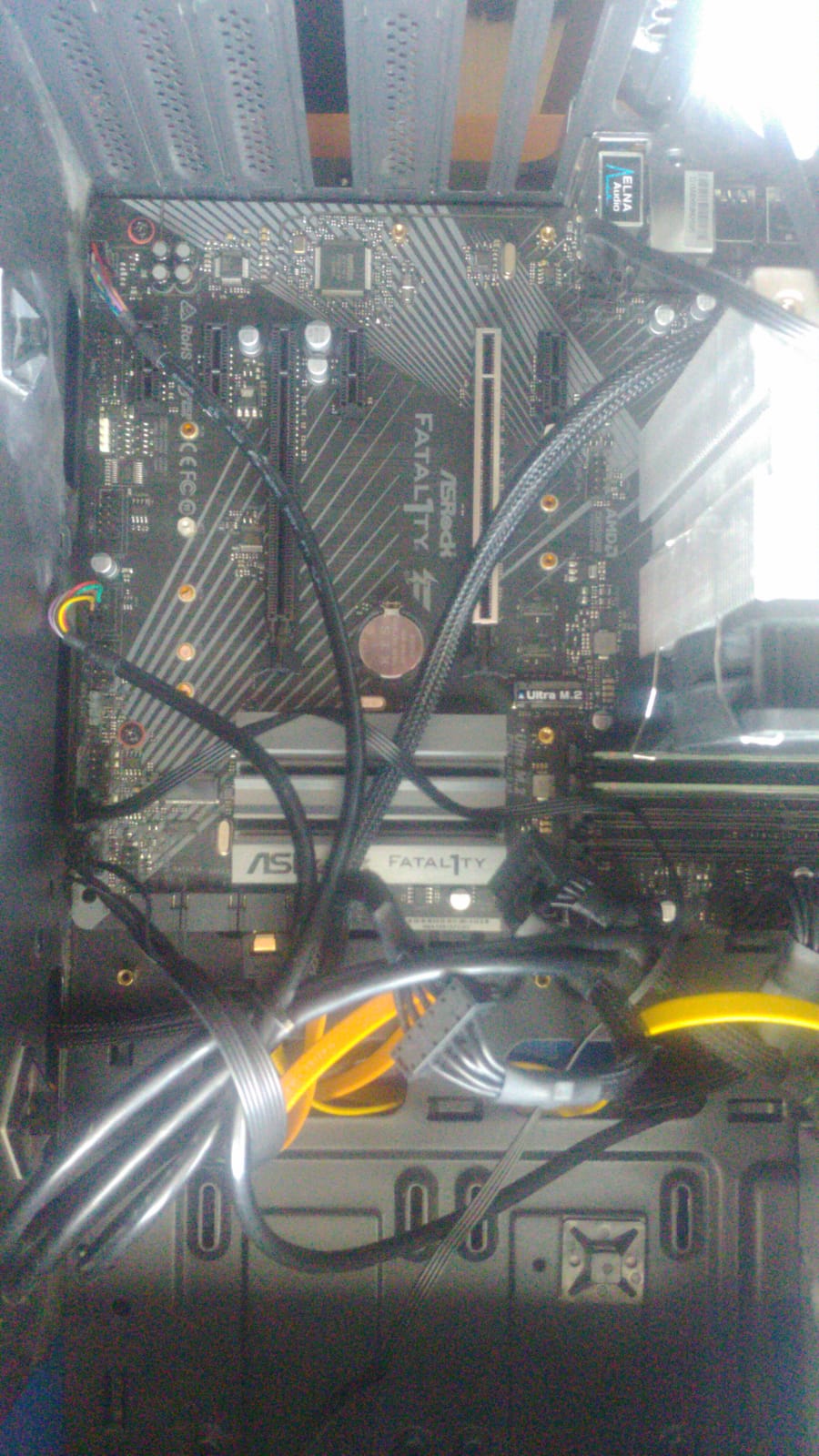 Als Prozessor dient ein AMD Ryzen 2400G, Mainboard ist ein ASRock Fataly B450 Gaming K4, Netzteil ein Bequiet System Power 9 500 Watt. Dazu eine 1TB HDD und 16GB RAM, da weiß ich leider noch nicht genau welcher RAM das ist.