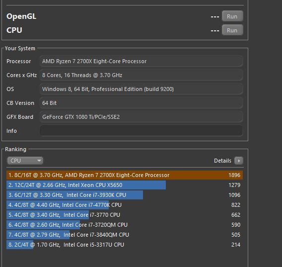 Jetzt das Problem. Cinebench R15 1580 Punkte.