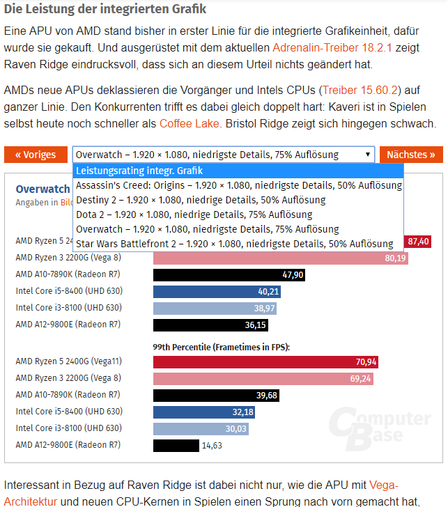 Weil dies von AMD in der Anleitung für die Reviewer vorgegeben wurde und die wissen schon genau wieso sie das gemacht hat. Natürlich nicht um eine sinnvolle Alternative aufzuzeigen, sondern eine gegen die man gut aussehen kann.boarder-winterman schrieb:Wieso konfigurieren denn hier alle dauernd den i3-8100 mit einer 1030er und sagen er ist dann teurer?