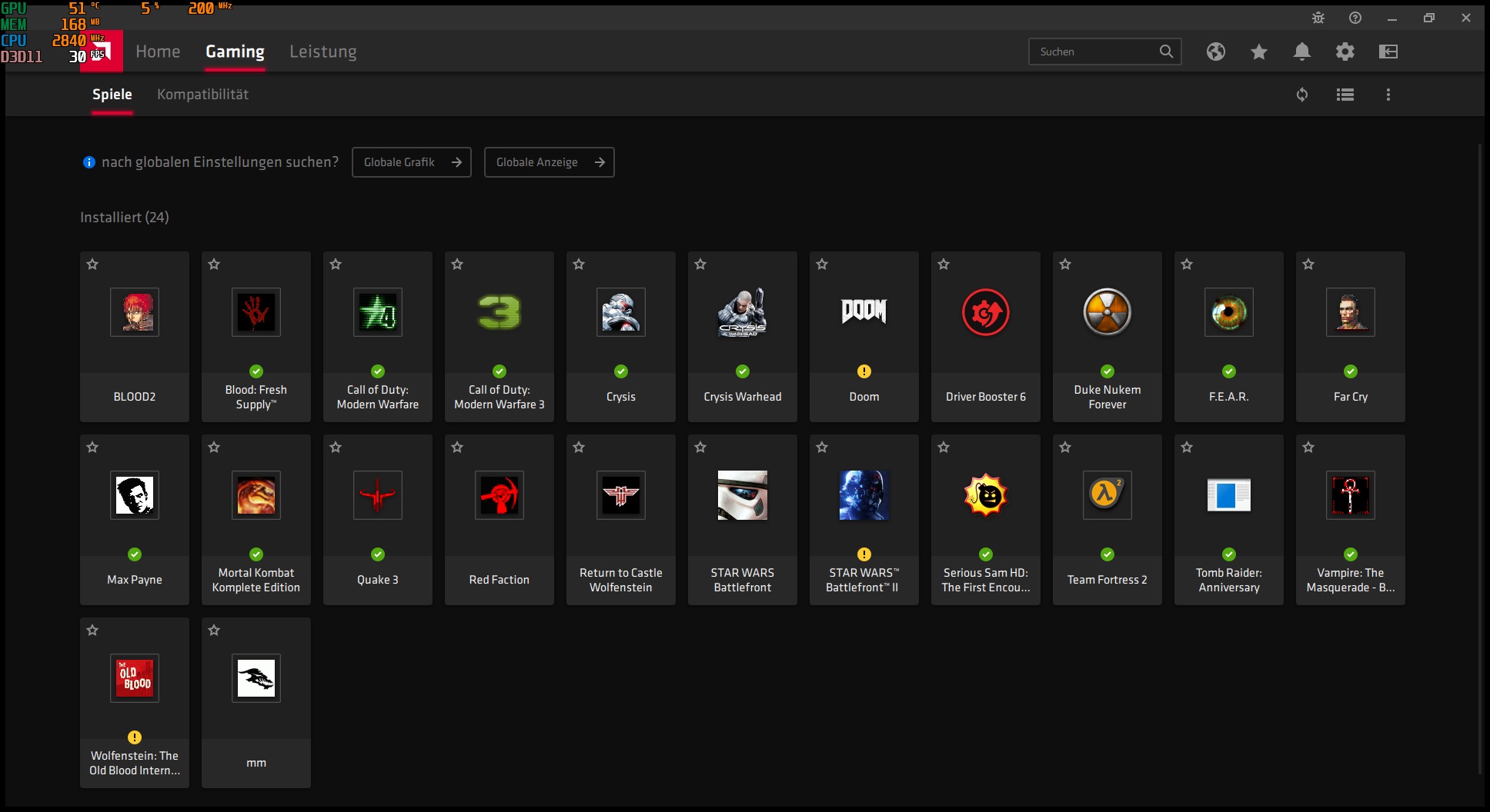 Einige Spiele wie Doom 2016 oder Star Wars Battlefront laufen allerdings relativ schlecht bei 15 FPS, Wolfenstein Old Blood bei 30 FPS gut spielbar.