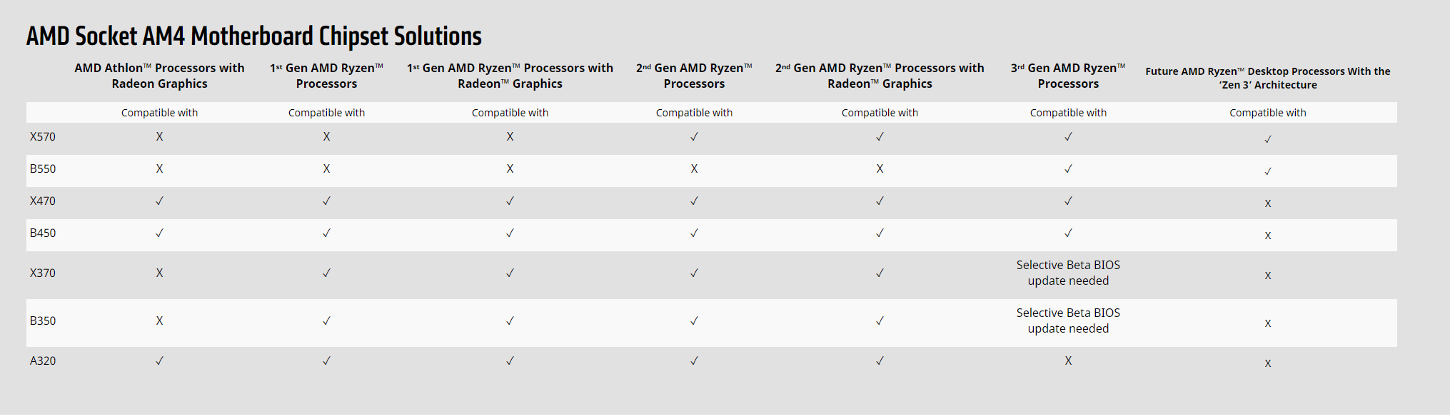 A: Yes! AMD officially plans to support next-gen AMD Ryzen desktop processors, with the “Zen 3” architecture, on AMD X570 and B550 motherboards. This will require a BIOS update. Specific details about this update will come at a later time, but we’re committed to keeping you up-to-date.